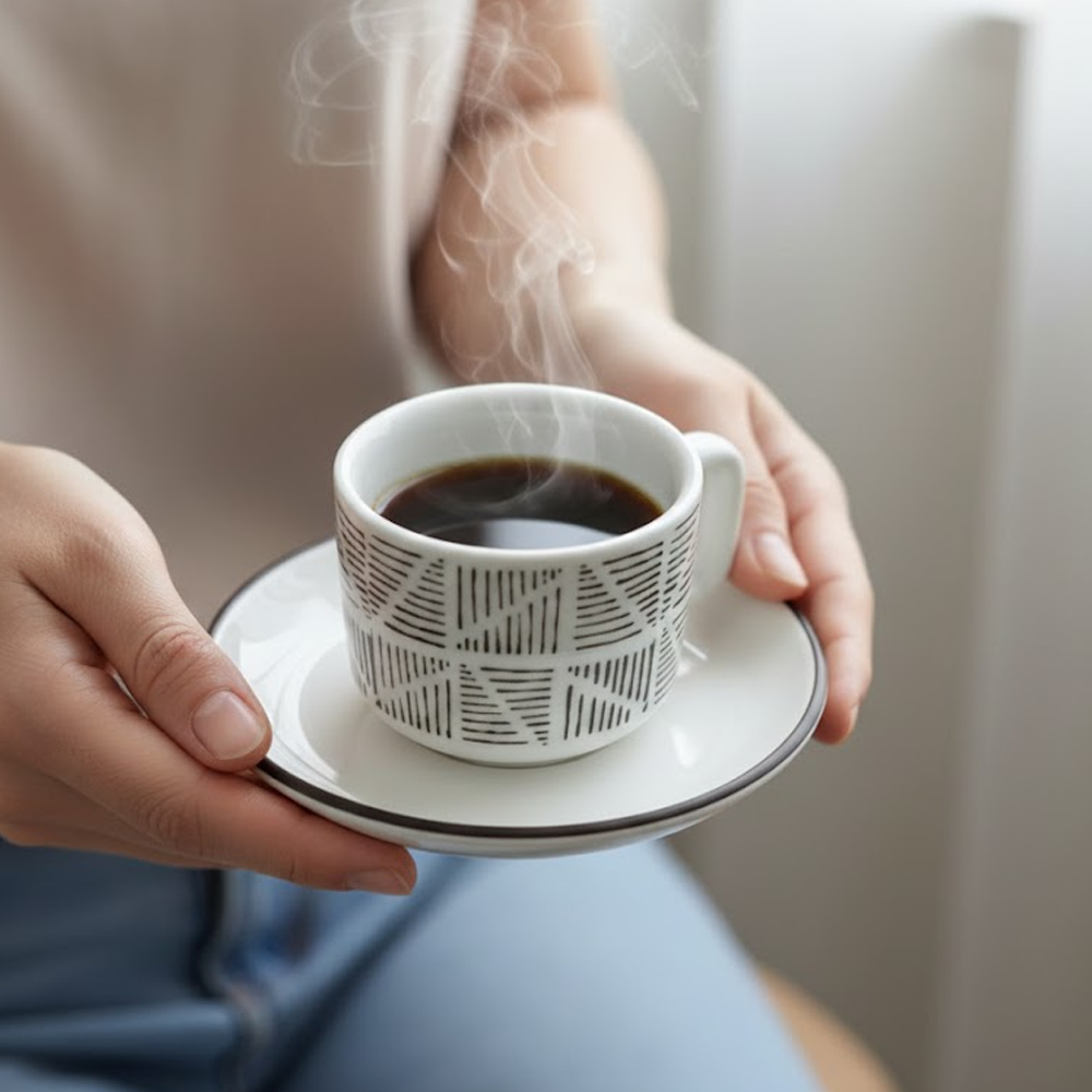 الطقم مثالي لتقديم القهوة العربية أو القهوة الأمريكية في الضيافة اليومية أو المناسبات الخاصة، ويجمع بين الأناقة، الراحة، والمتانة. تصميم المقبض مريح للحمل، بينما تضمن الصحون ثبات الفنجان وحماية الأسطح.