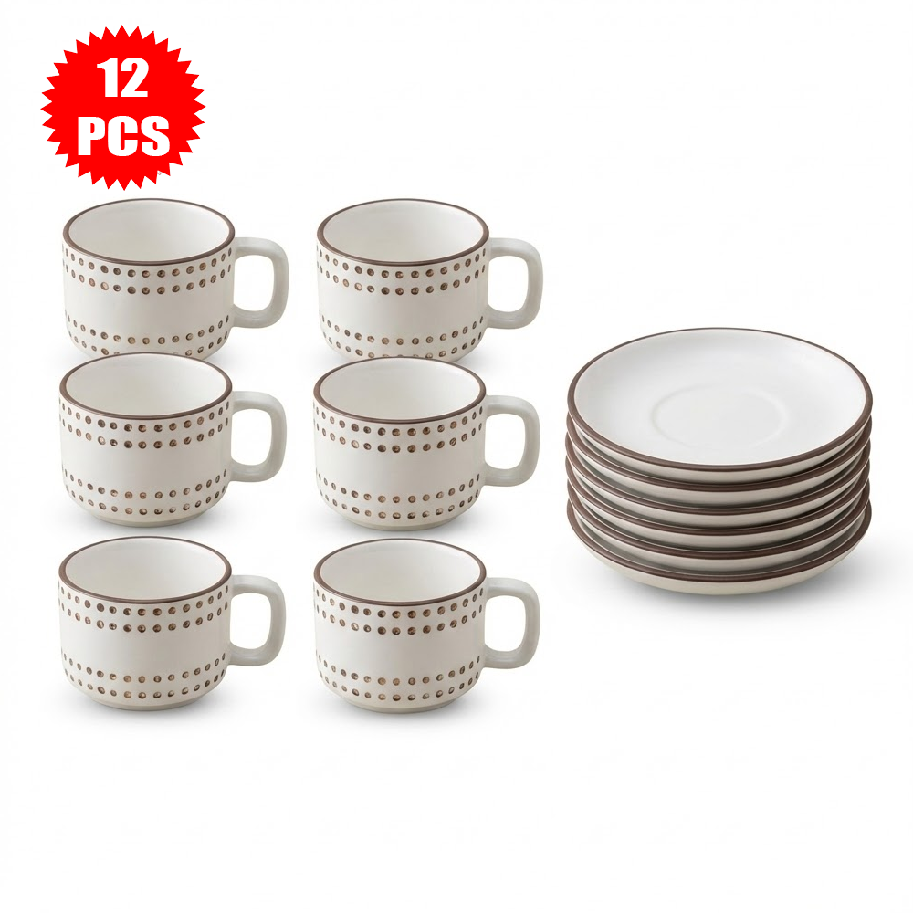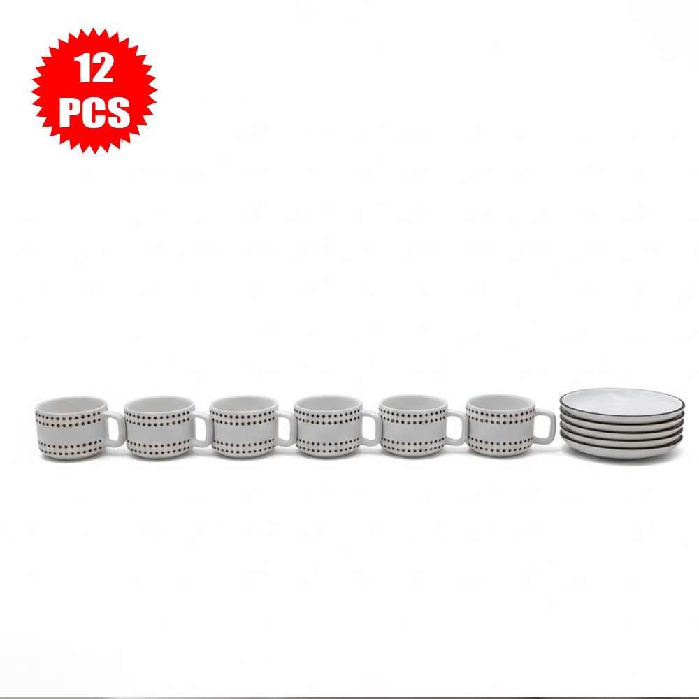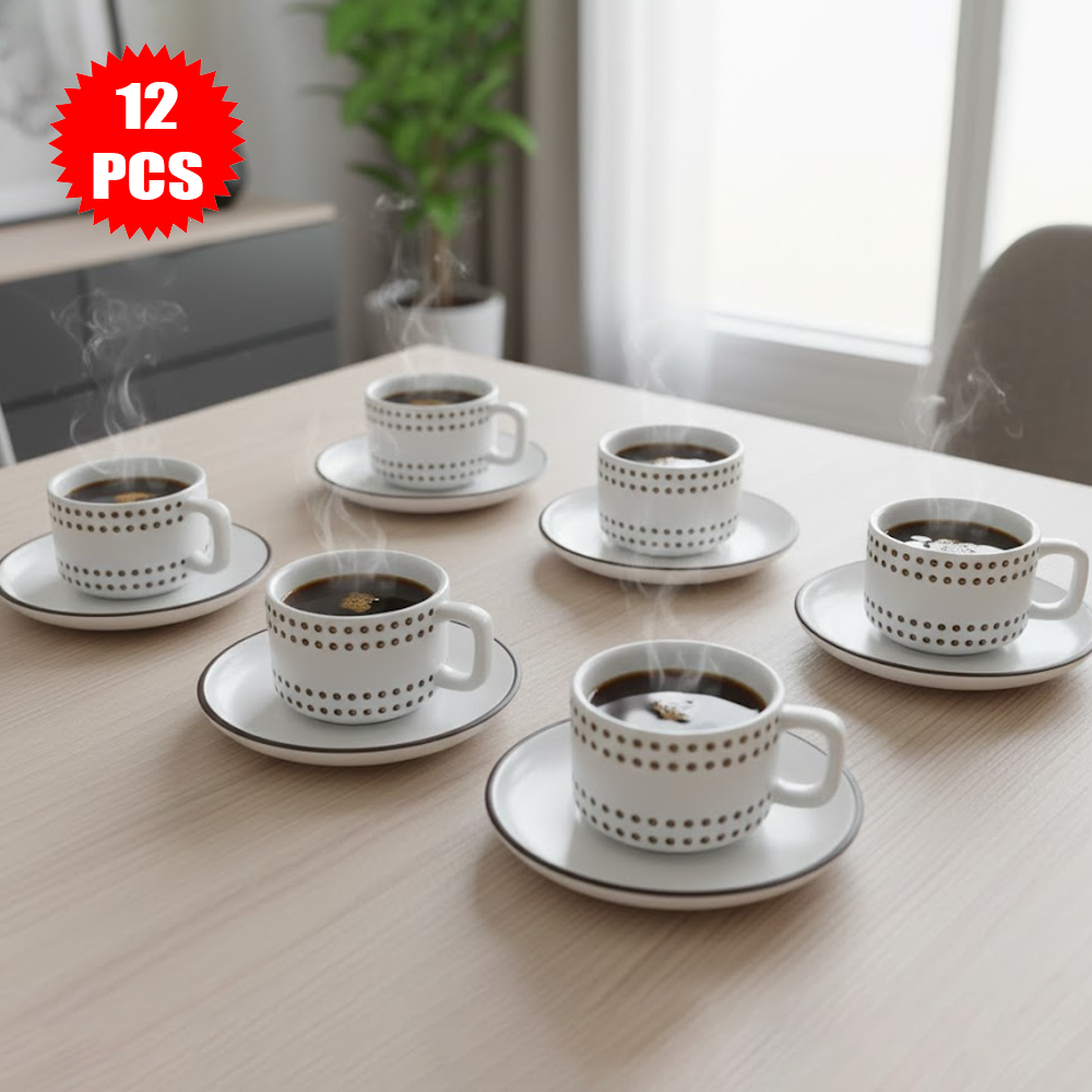طقم فناجين قهوة بنقشة منقطة أنيقة – 12 قطعة بتصميم عصري