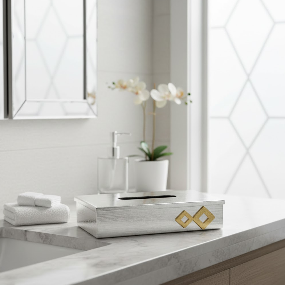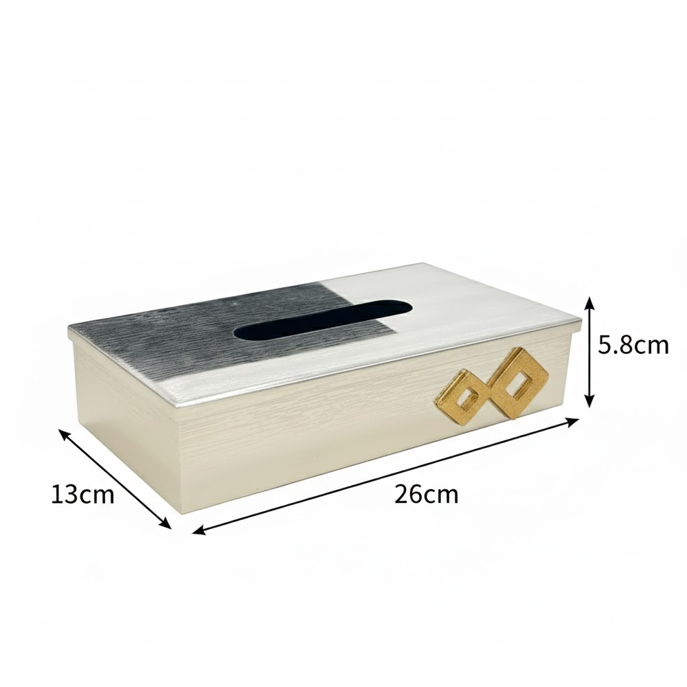 أضف لمسة من الفخامة والذوق الرفيع إلى منزلك مع علبة المناديل الأنيقة المصممة بعناية لتناسب المجالس، غرف المعيشة، غرف النوم وحتى دورات المياه. تصميم عصري بسيط مع تفاصيل معدنية راقية يجعلها قطعة ديكور بقدر ما هي عملية.
