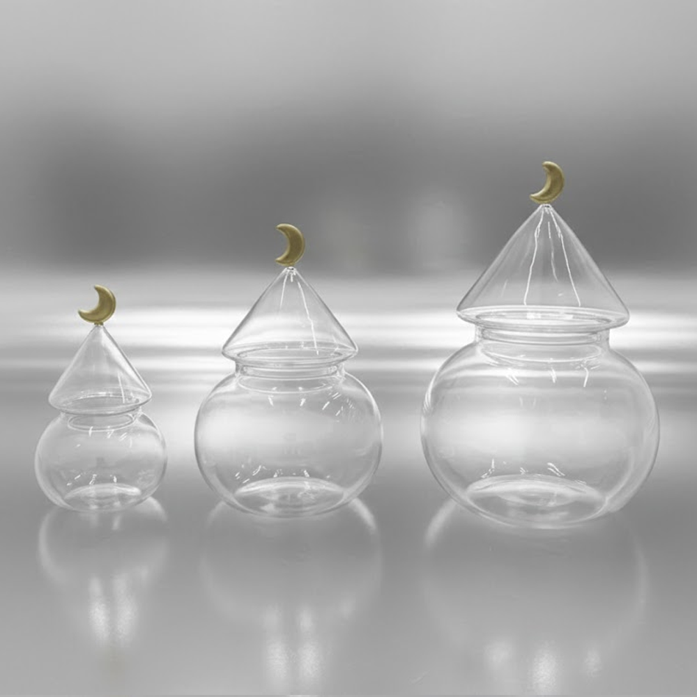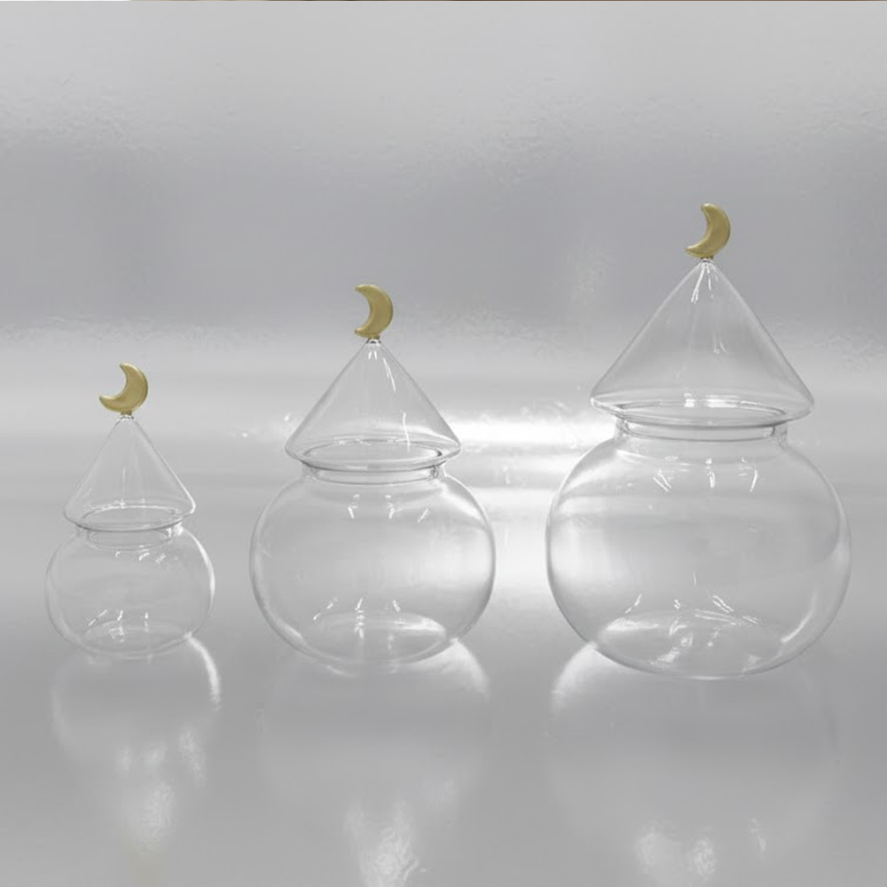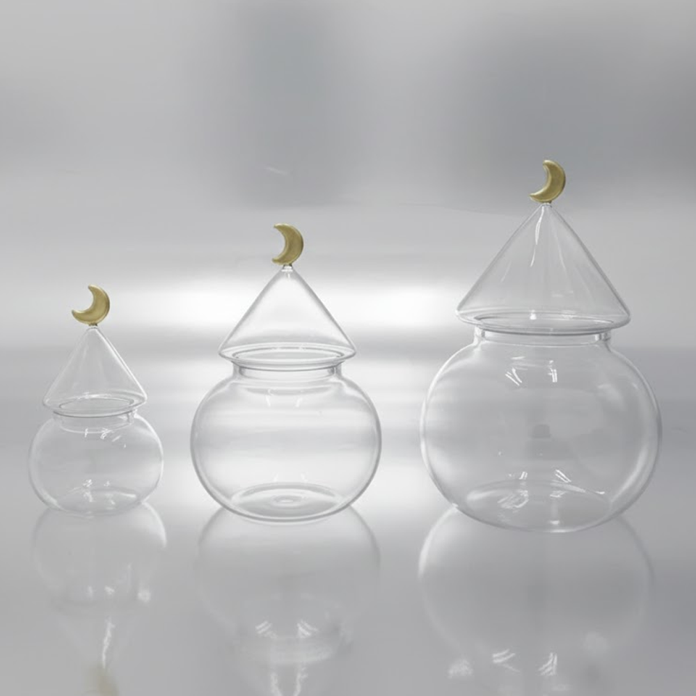 غرشة ضيافة زجاجية بغطاء هلال