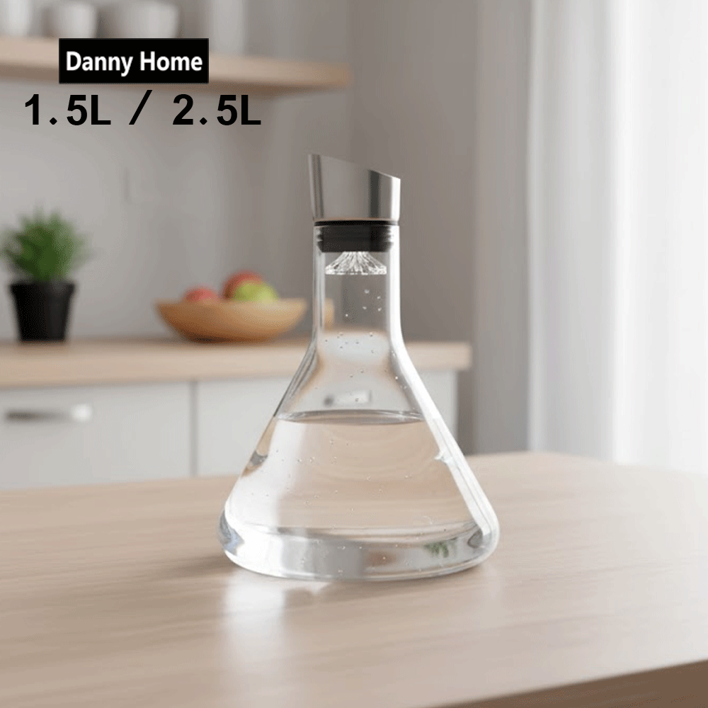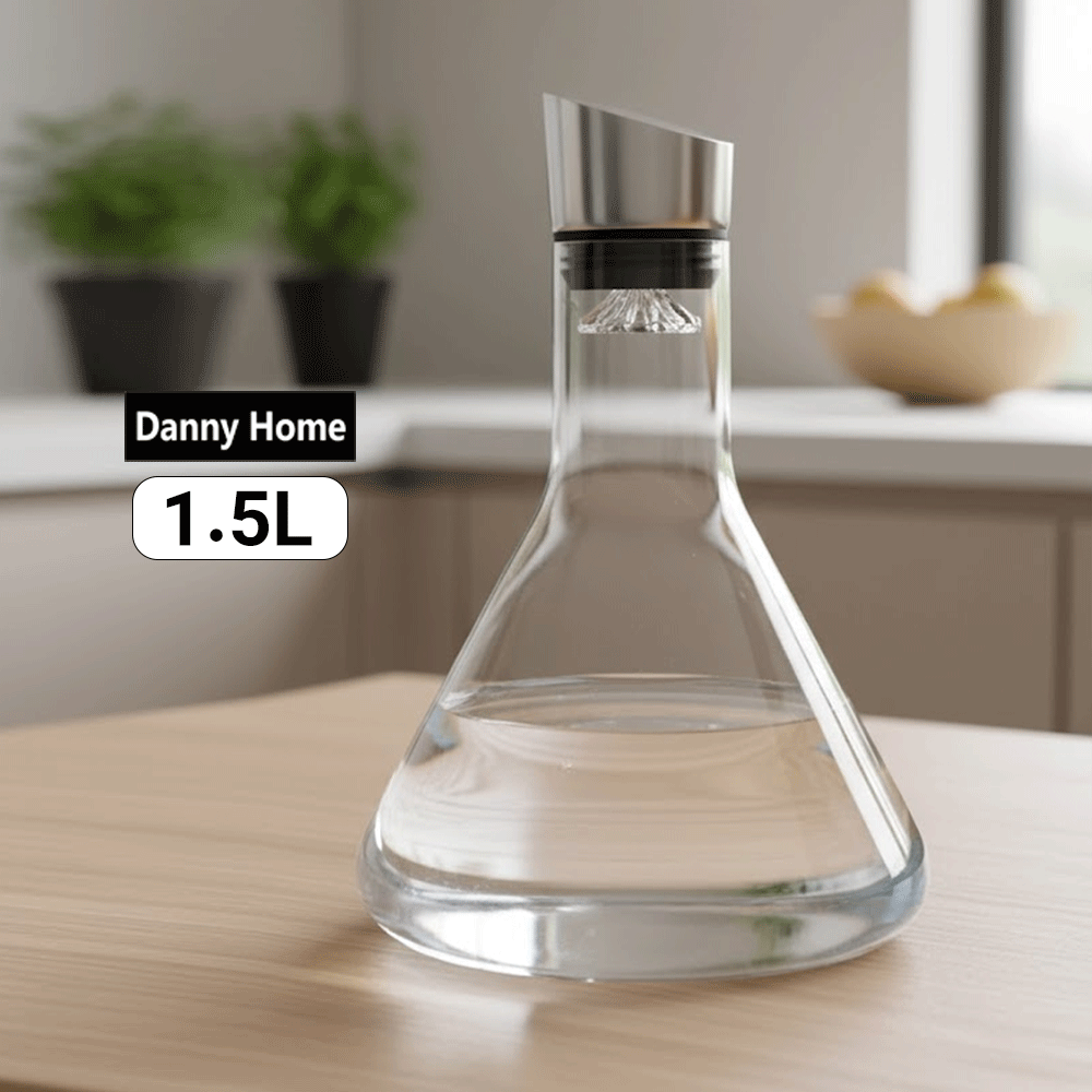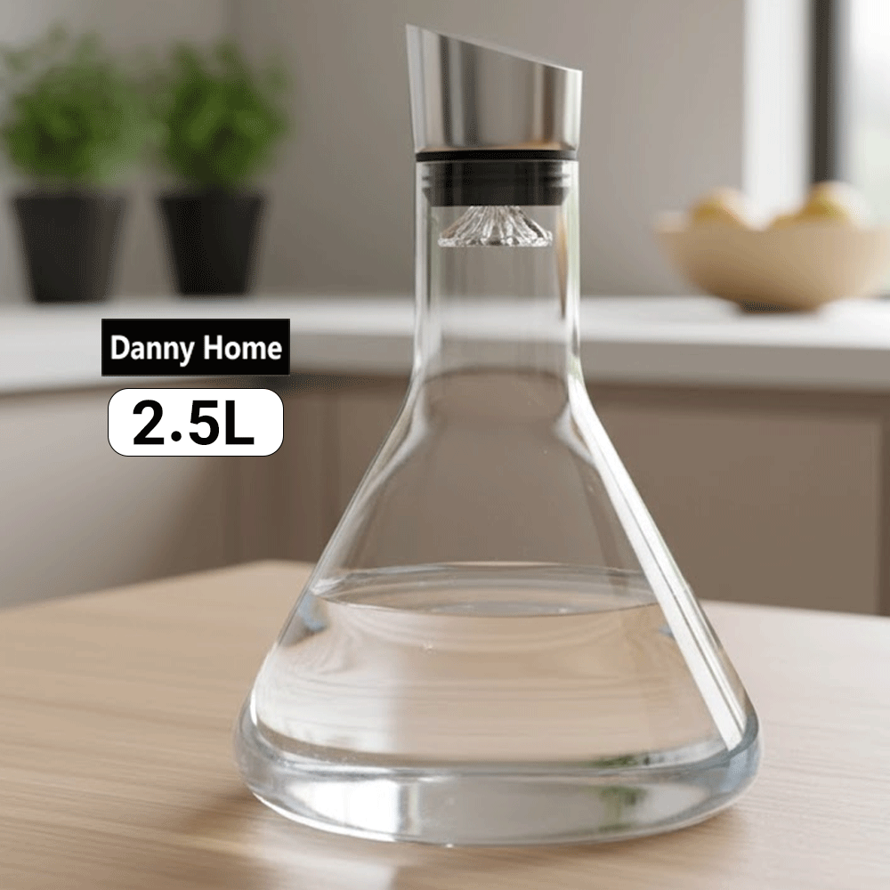 أضف لمسة من الفخامة والذوق الرفيع إلى منزلك مع هذه القارورة الزجاجية الكريستالية بتصميمها المائل المميز والغطاء المعدني الأنيق. تجمع بين الجمال العملي والتصميم العصري لتناسب مختلف الاستخدامات المنزلية والمناسبات الخاصة.