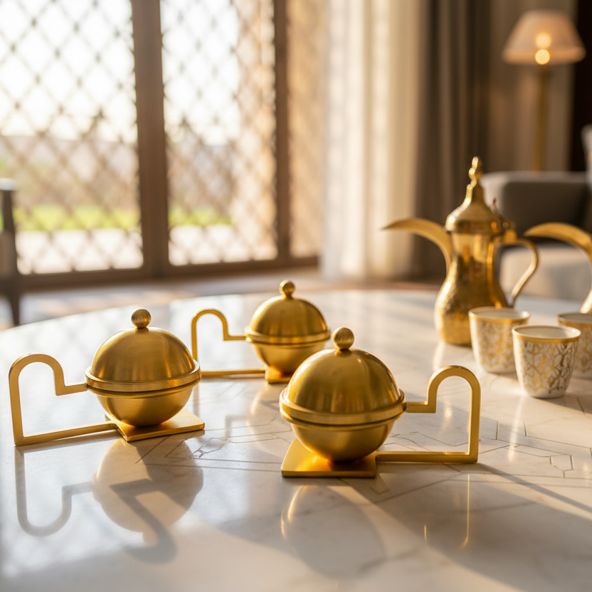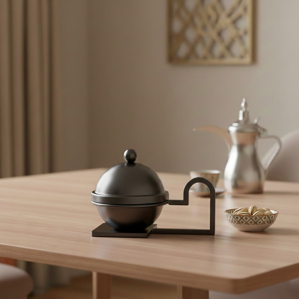 القطعة الأجمل بجانب دلة القهوة! 🌙☕ تمرية بتصميم كروي ساحر وقاعدة مبتكرة، تمنح طاولة الضيافة مظهراً فخماً وعصرياً. مثالية لتقديم التمر، الشوكولاتة، أو الحلويات الرمضانية. اختر لونك المفضل أو امزج بين الألوان (الذهبي، الفضي، البني، الأسود) لإطلالة مبهرة.