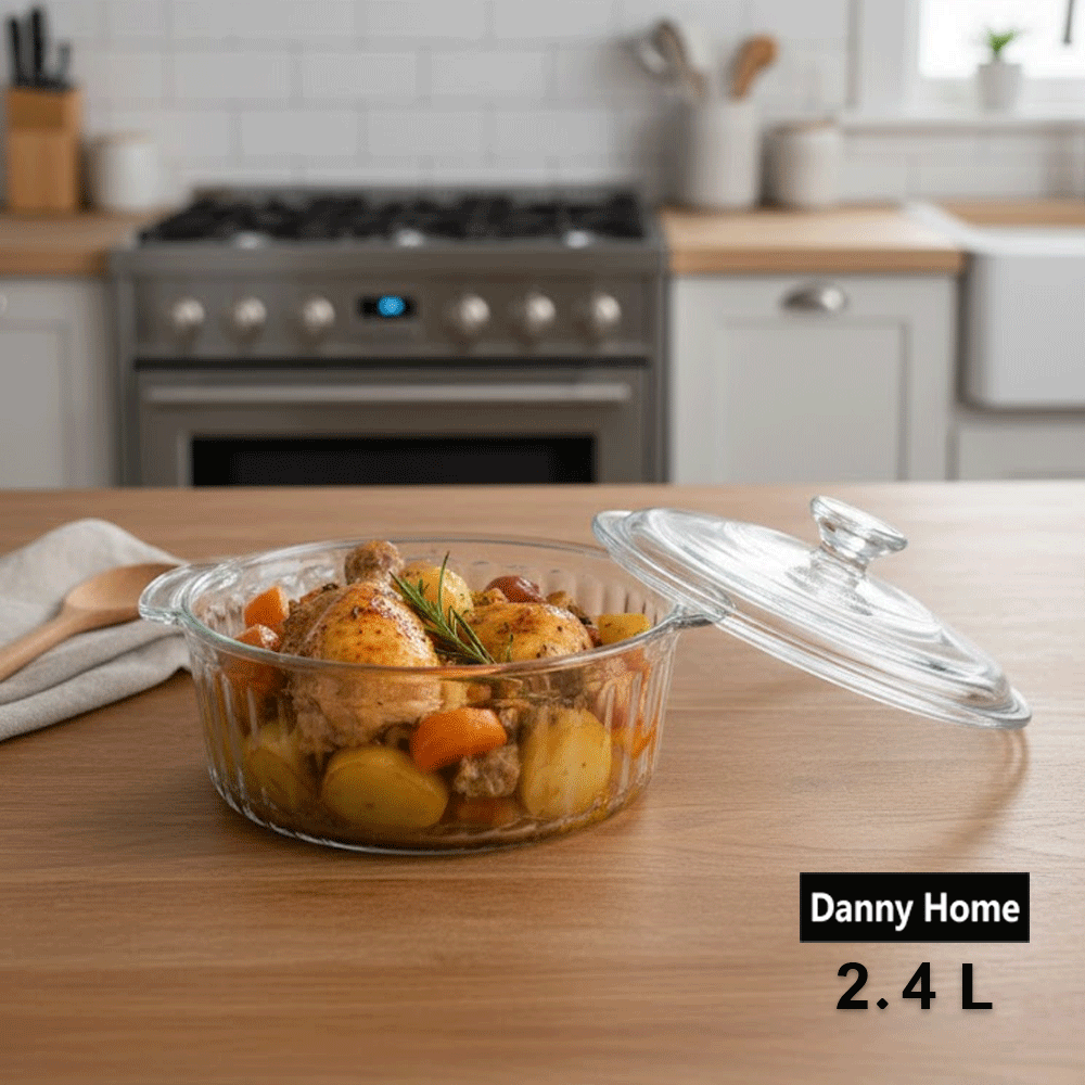 صينية زجاجية بيضاوية مع غطاء من Danny Home مصنوعة من زجاج البوروسيليكات عالي الجودة، تجمع بين الأناقة والمتانة في آنٍ واحد.