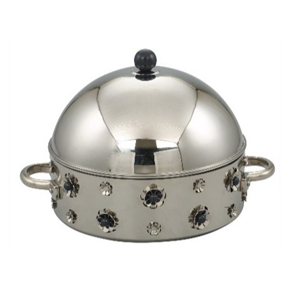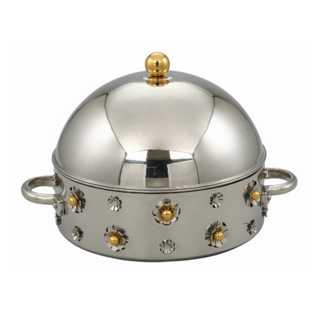 تمتع بتجربة تقديم الطعام الفاخرة مع هذه الكاسارولة المعدنية المصممة بأناقة، والتي تجمع بين الجمال والعملية في كل تفاصيلها. تتميز الكاسارولة بحجمها المثالي للحفاظ على حرارة الطعام لفترة طويلة، وهي متاحة بعدة أحجام لتناسب احتياجاتك: