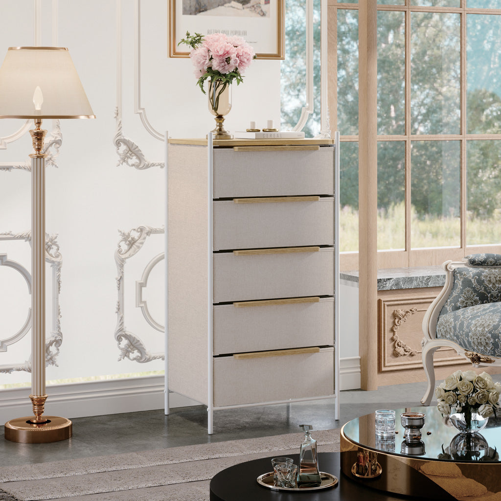 سعة عالية - 5 أدراج بأحجام مختلفة توفر المزيد من خيارات التخزين، ومساحة كافية تخلق مساحة أنيقة ونظيفة لغرفة نومك أو غرفة المعيشة.