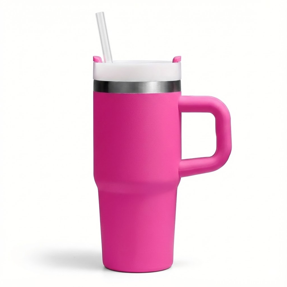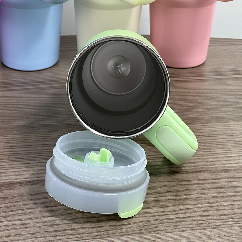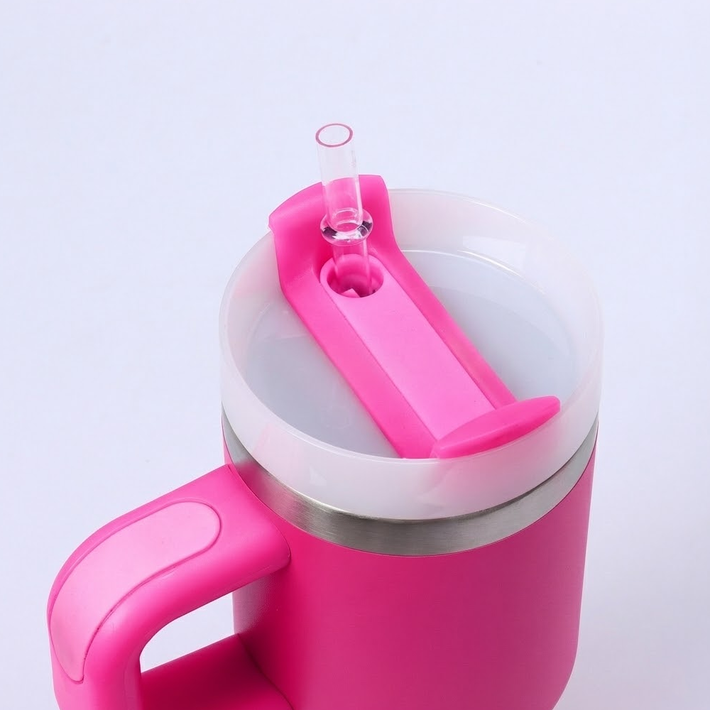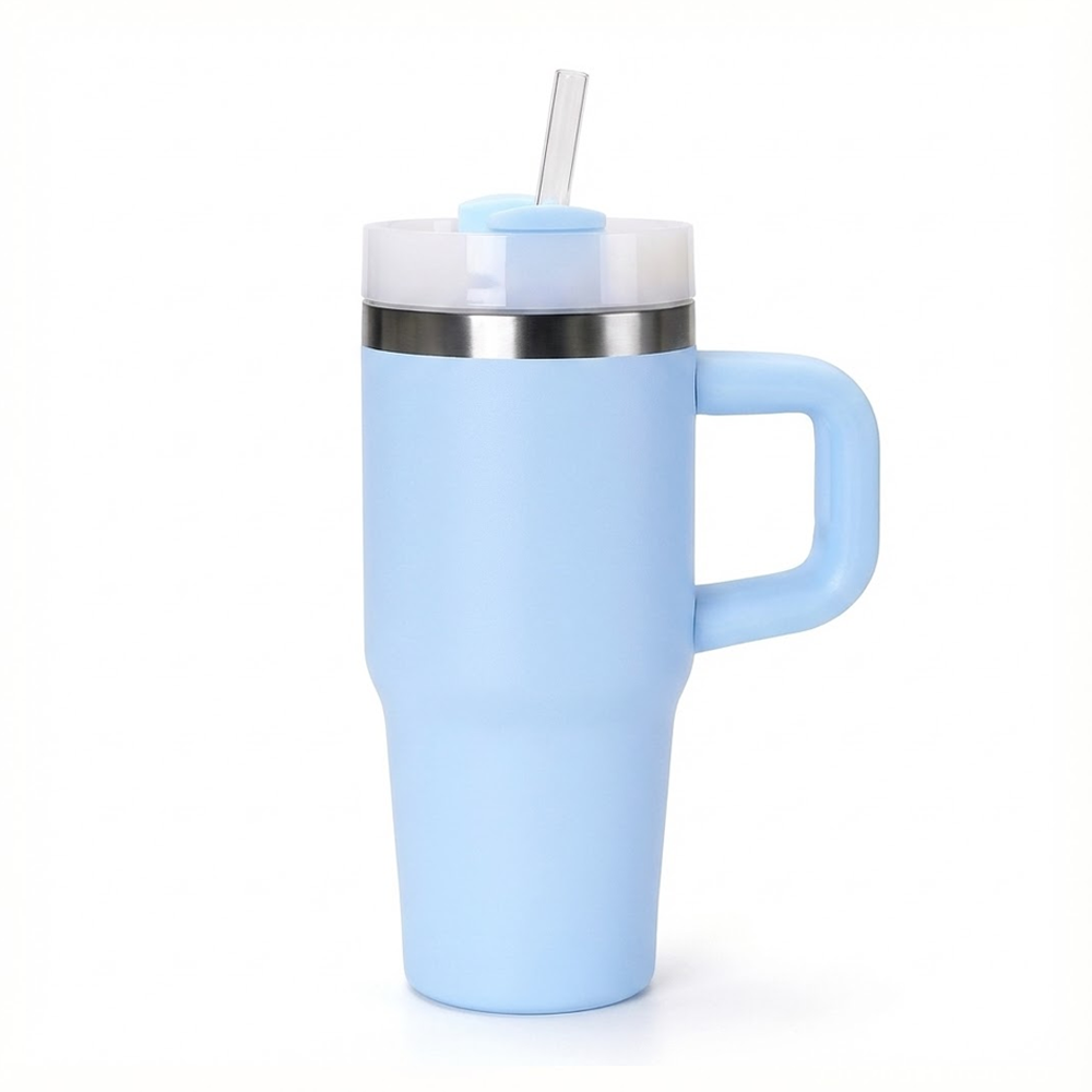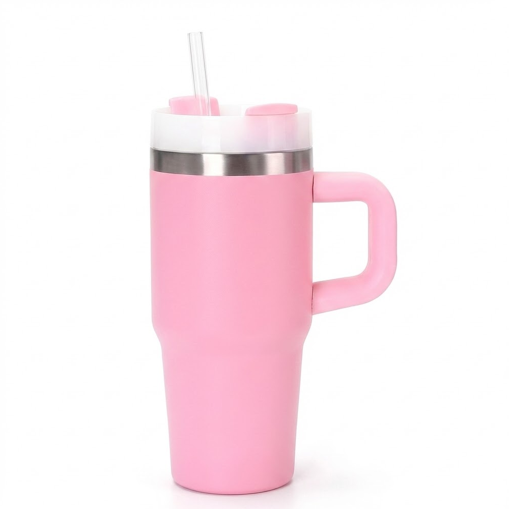 كوب حراري عملي مزود بيد مريحة وغطاء محكم الإغلاق يمنع الانسكاب، مع إمكانية استخدام المصاصة للشرب بسهولة. تصميم أنيق وألوان ناعمة تناسب المدرسة، العمل، السيارة، أو الاستخدام اليومي في المنزل.