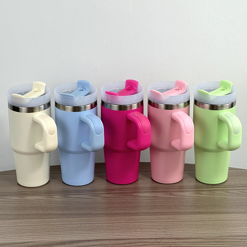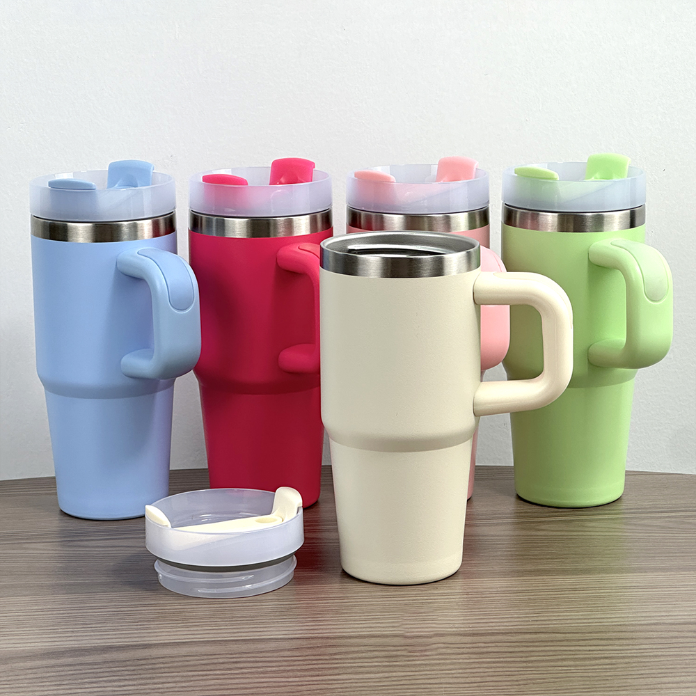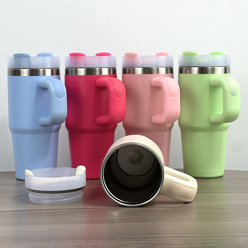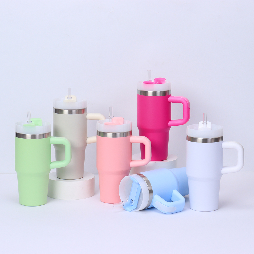 كوب حراري عملي مزود بيد مريحة وغطاء محكم الإغلاق يمنع الانسكاب، مع إمكانية استخدام المصاصة للشرب بسهولة. تصميم أنيق وألوان ناعمة تناسب المدرسة، العمل، السيارة، أو الاستخدام اليومي في المنزل.