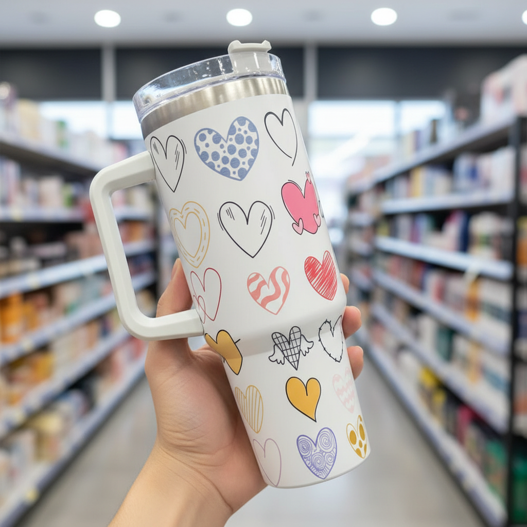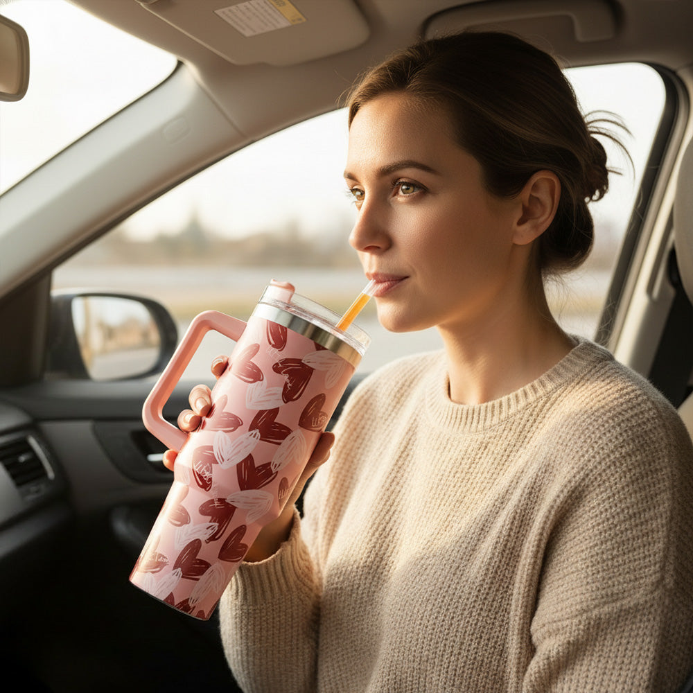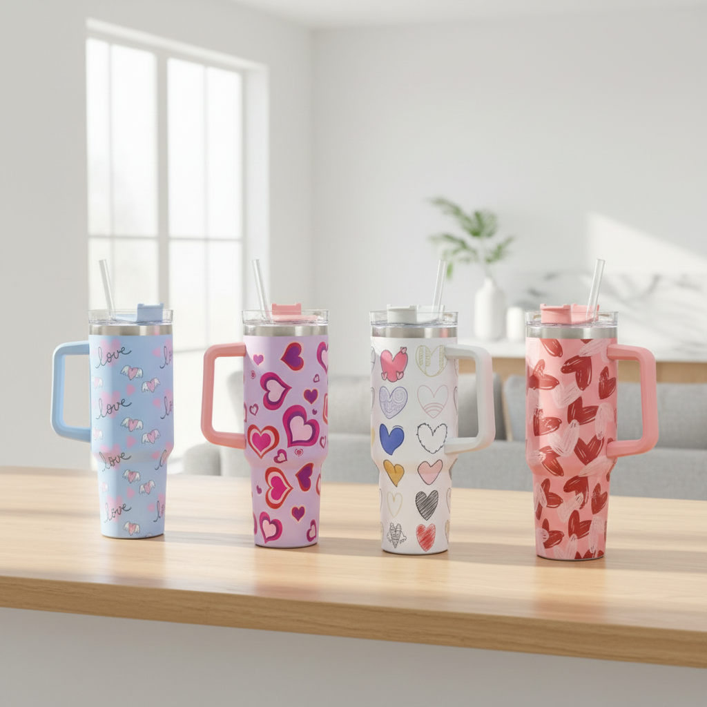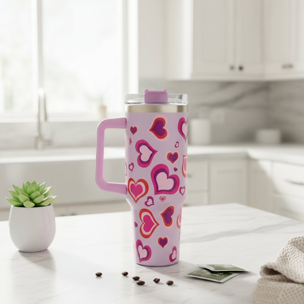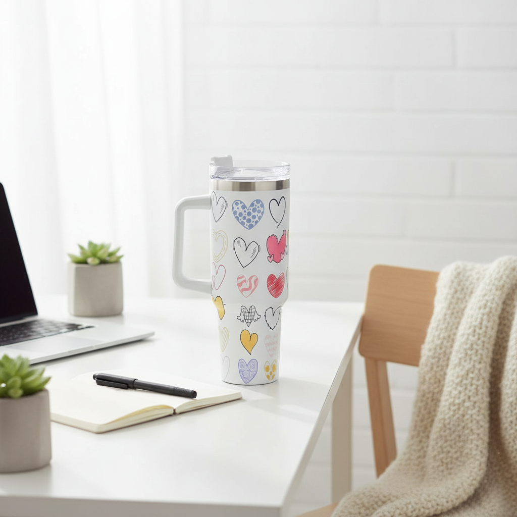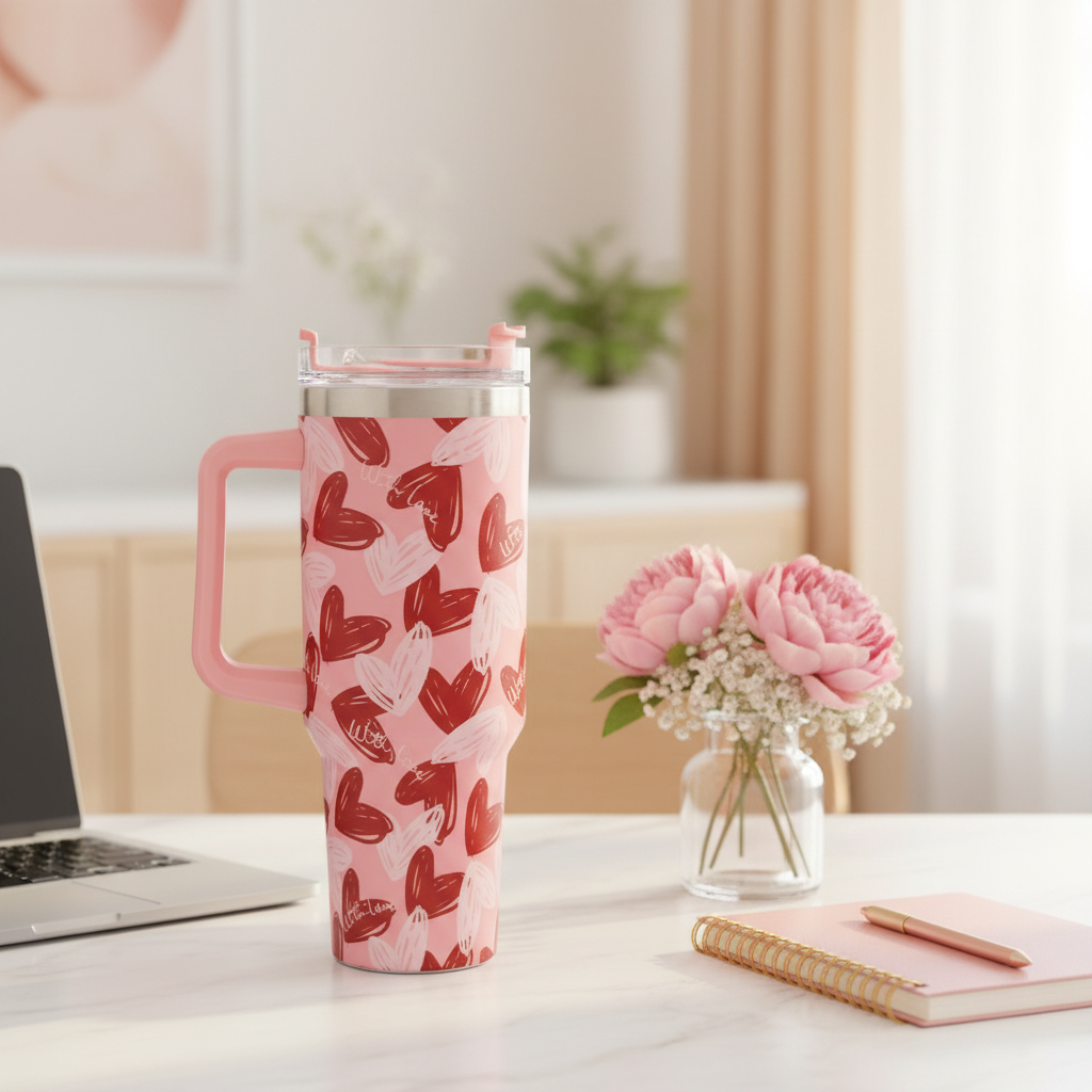 حسّن روتين ترطيبك مع أكوابنا المعزولة من مجموعة هارت كوليكشن، سعة 40 أونصة، المصممة للأناقة والراحة والتحكم في درجة الحرارة طوال اليوم. يتميز كل كوب بطبعة قلب فريدة، ومقبض متين ومريح، وغطاء مقاوم للانسكاب - مثالي للعمل، أو الدراسة، أو السفر، أو الاستخدام اليومي. مصنوع من الفولاذ المقاوم للصدأ بجدار مزدوج للحفاظ على المشروبات باردة أو ساخنة لساعات. اختر تصميمك المفضل وارتشف بشغف!