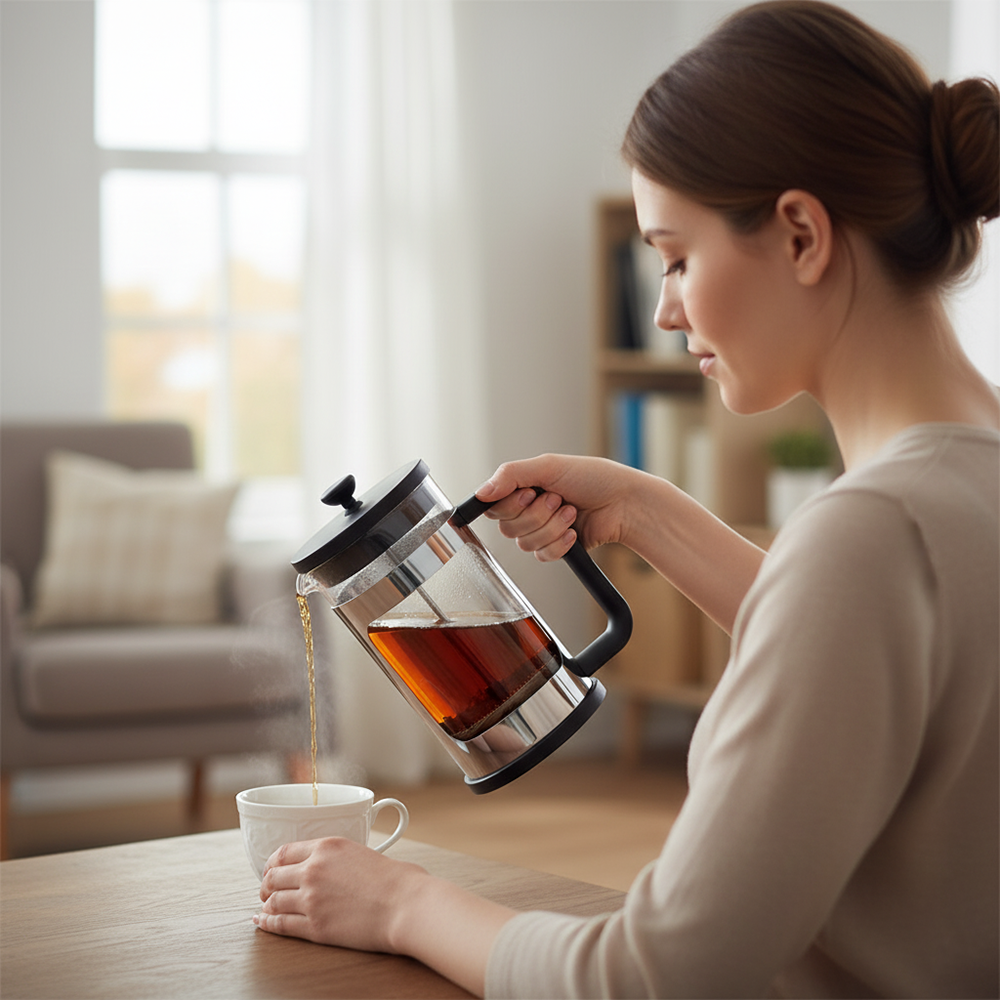 لتحضير القهوة الفرنسية، الشاي الأسود، أو المشروبات العشبية.