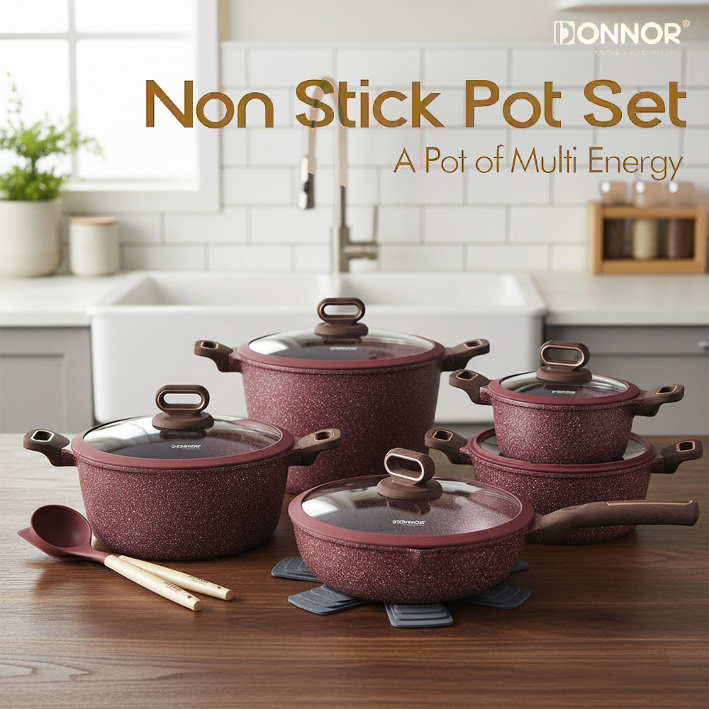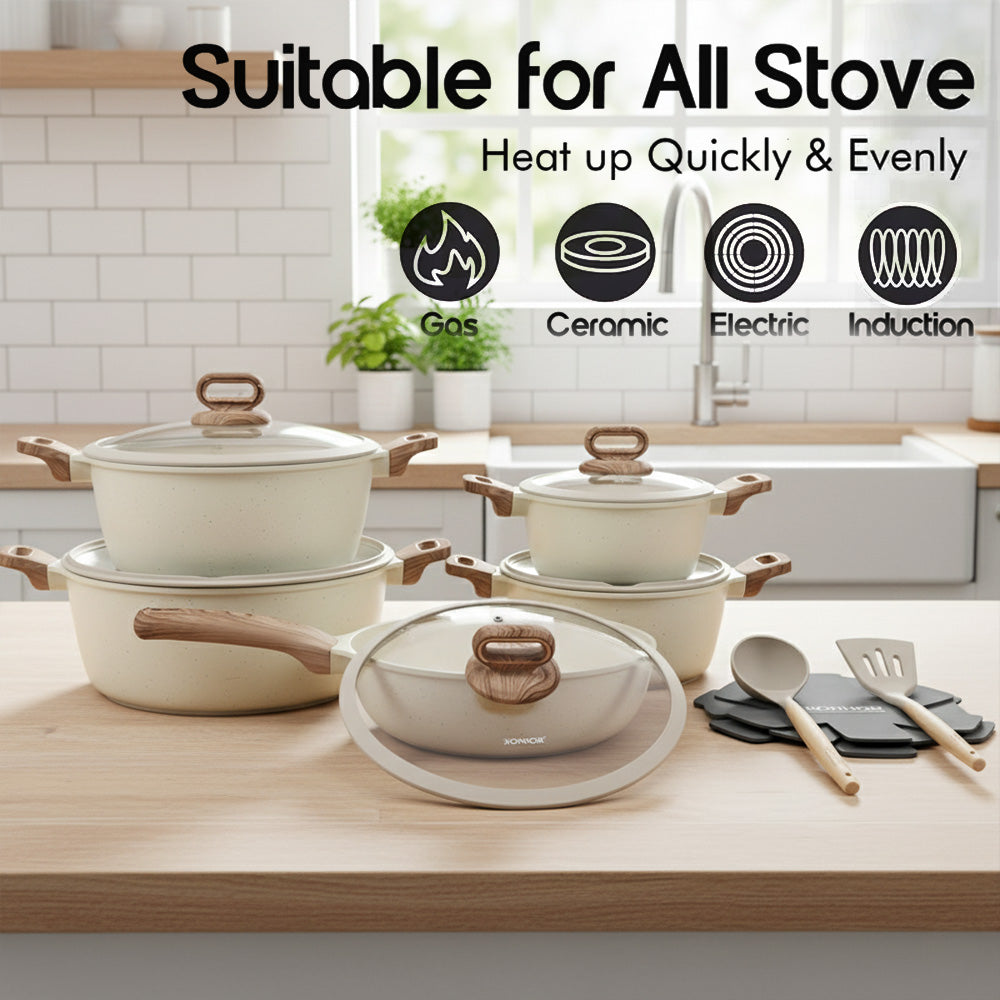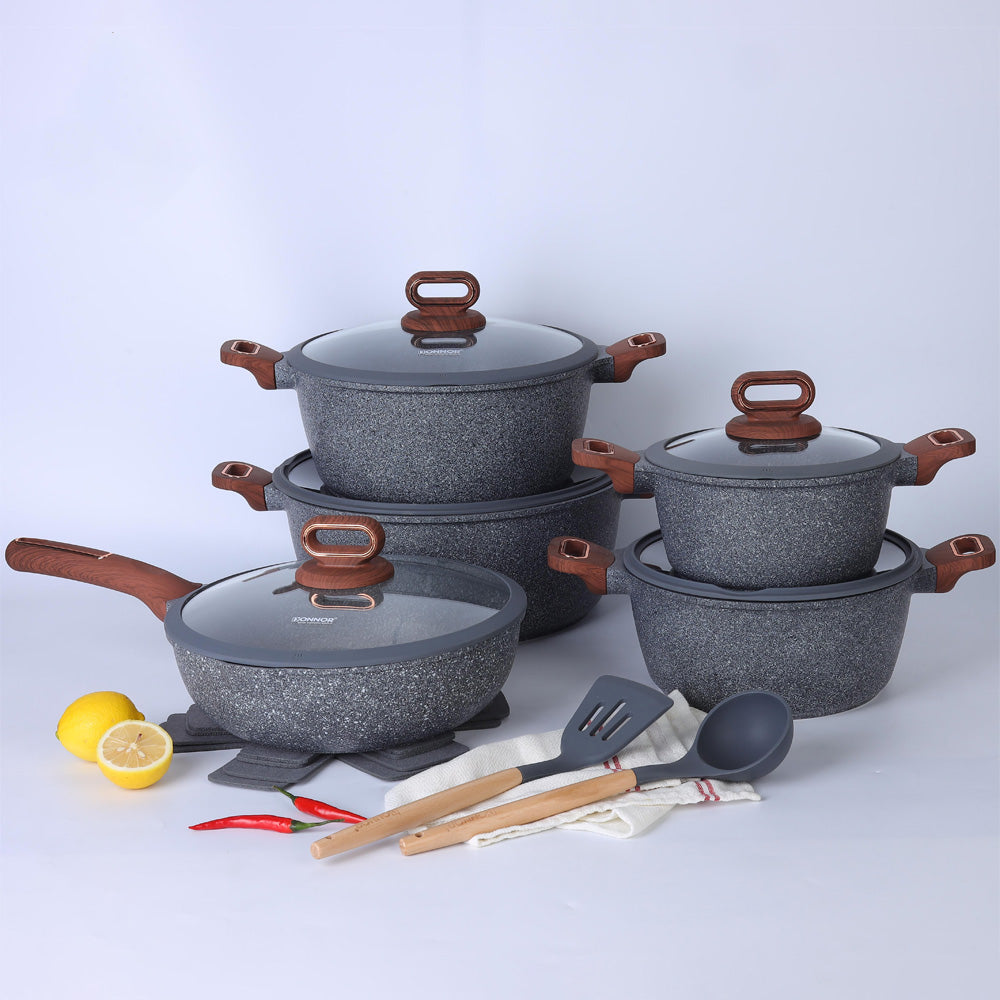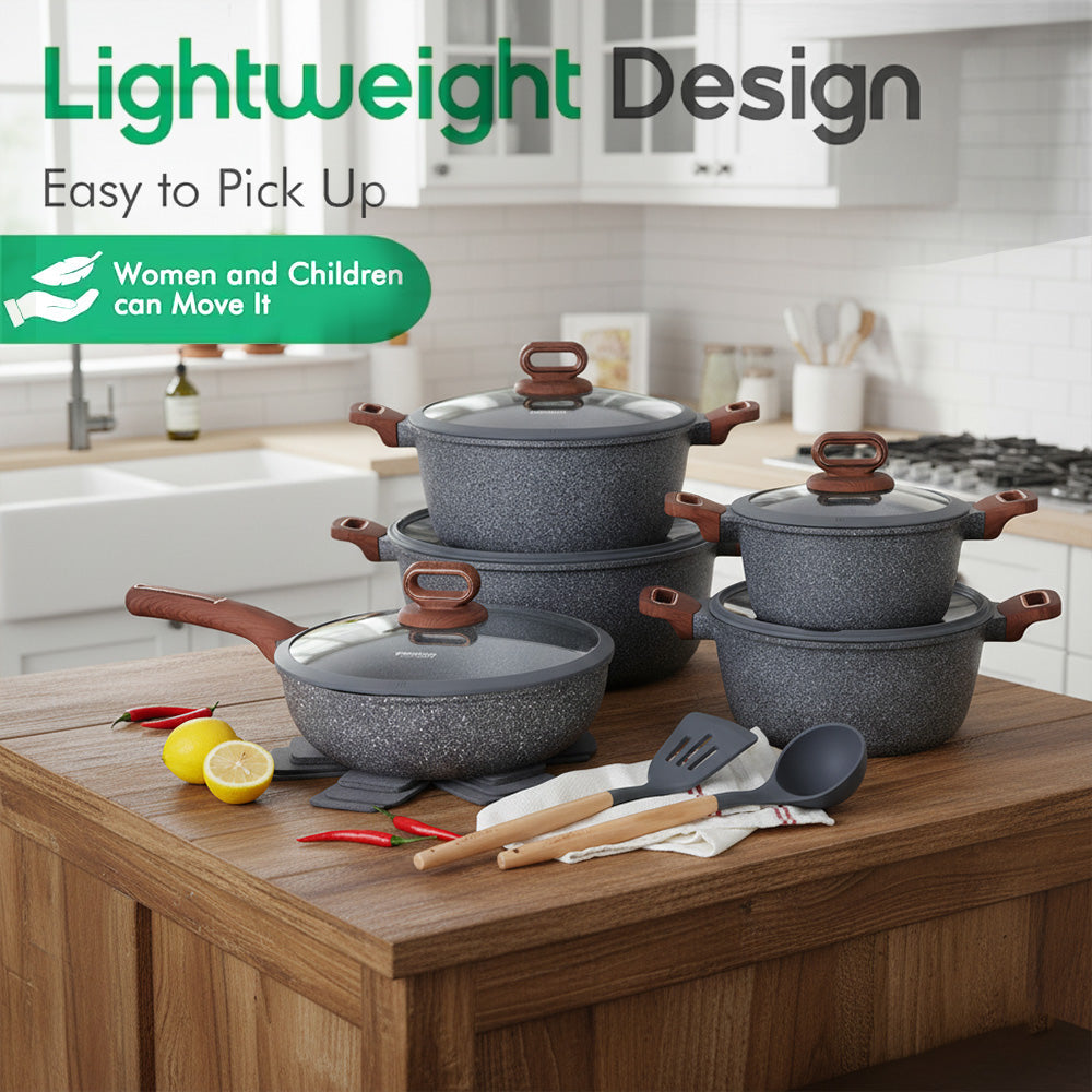 مجموعة أواني طهي جرانيتية غير لاصقة 15 قطعة