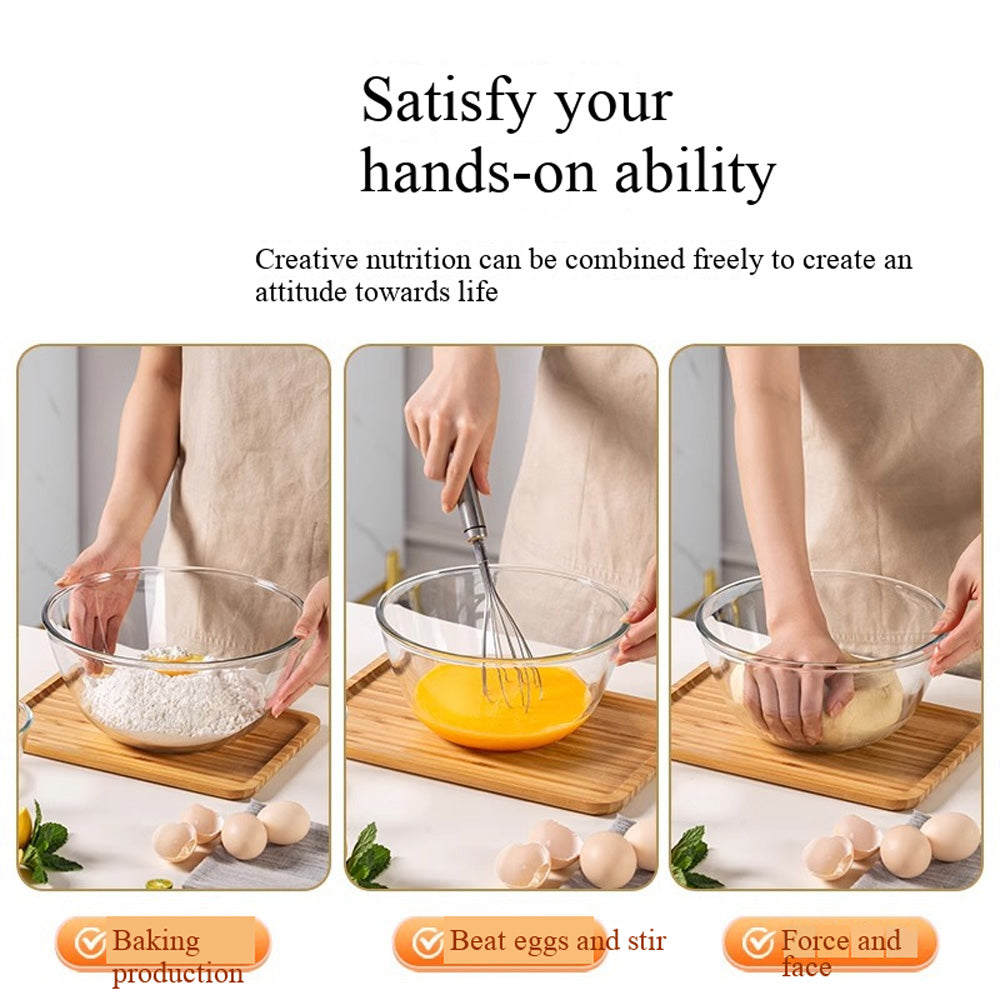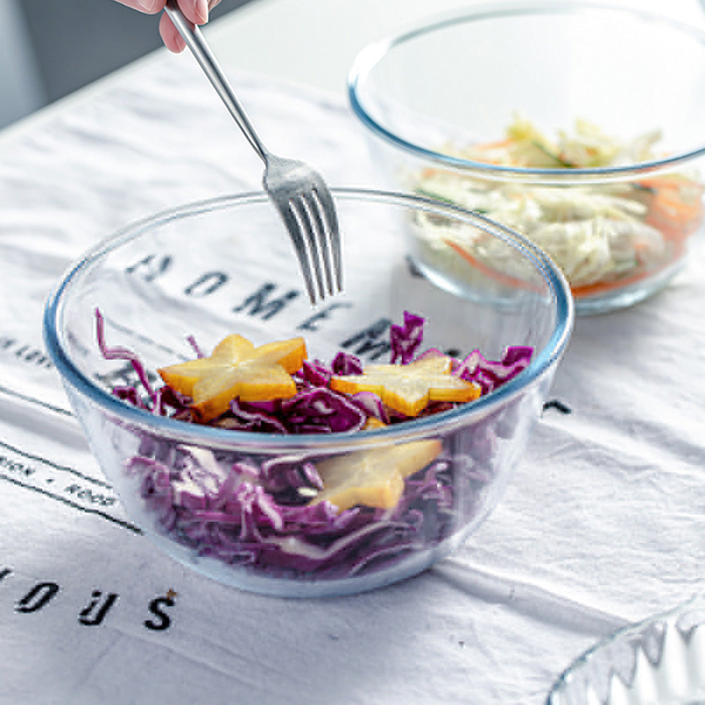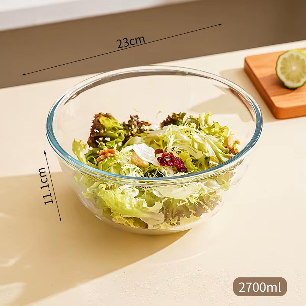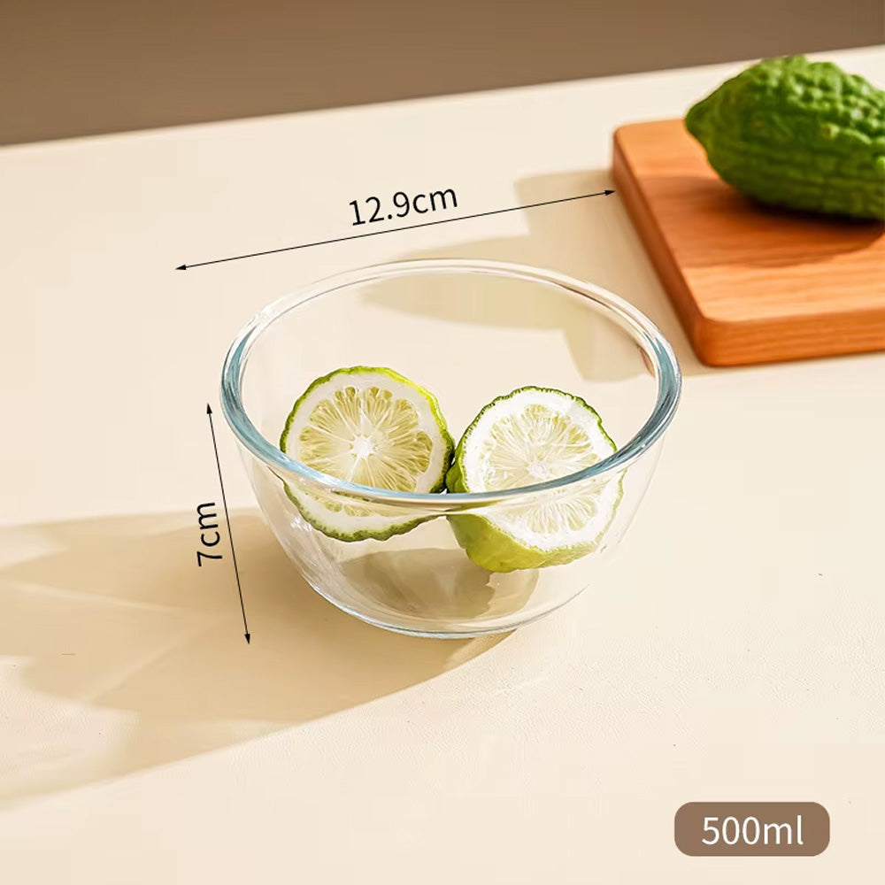سواء كنت تخلط المكونات، أو تقدم السلطات، أو تخزن بقايا الطعام، فإن هذه الأوعية الزجاجية الشفافة توفر لك الراحة والمظهر الأنيق. تصميمها الشفاف يسمح لك بسهولة مراقبة محتوياتها، بينما يوفر شكلها القابل للتكديس مساحة تخزين قيّمة.