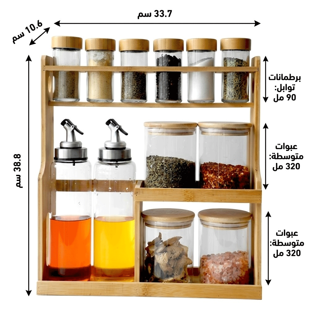 تنظيم ذكي يشمل توابل، زيت، خل، وملحقاتها
