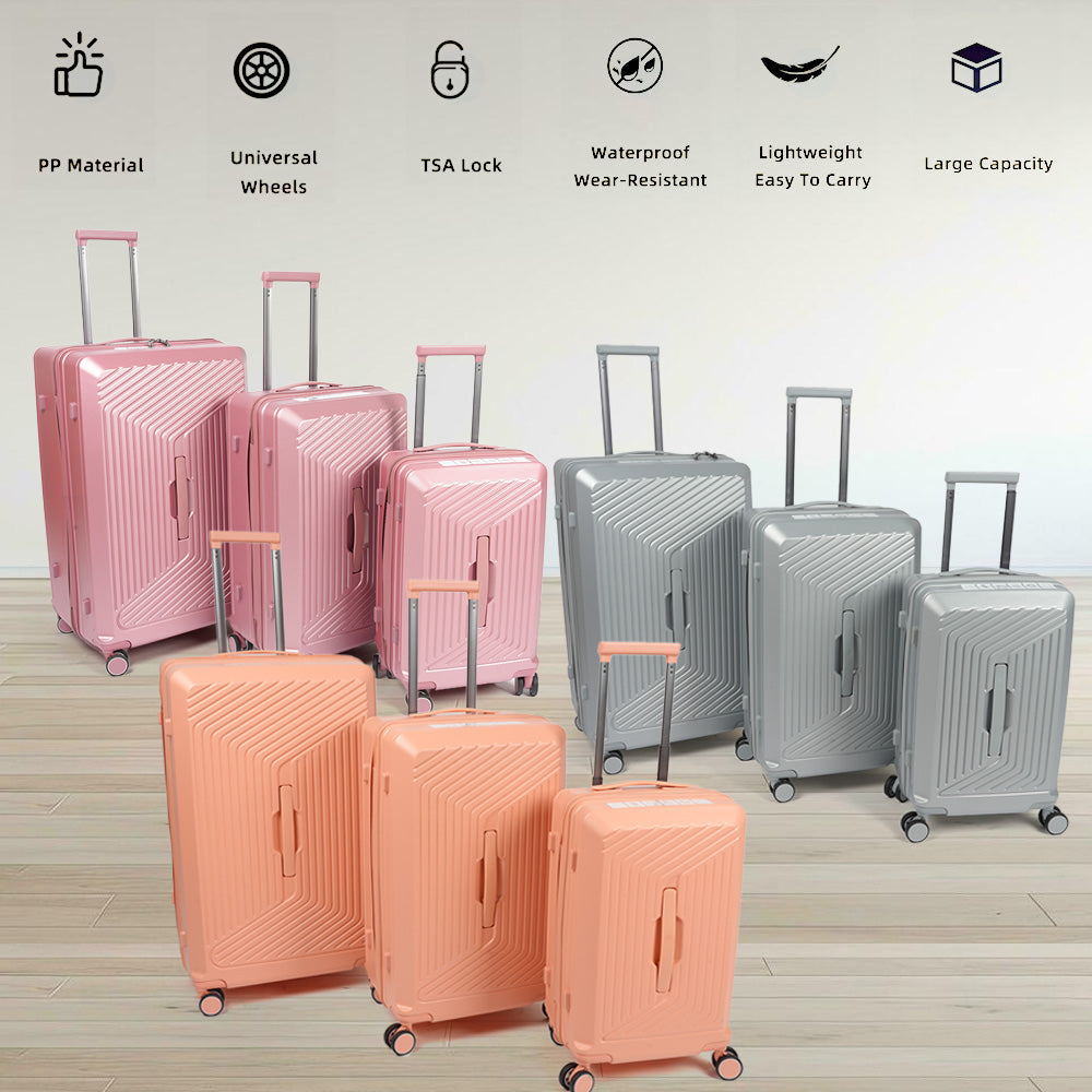 طقم حقائب سفر من 3 قطع مصنوع من البولي بروبيلين الصلب المقاوم للماء.