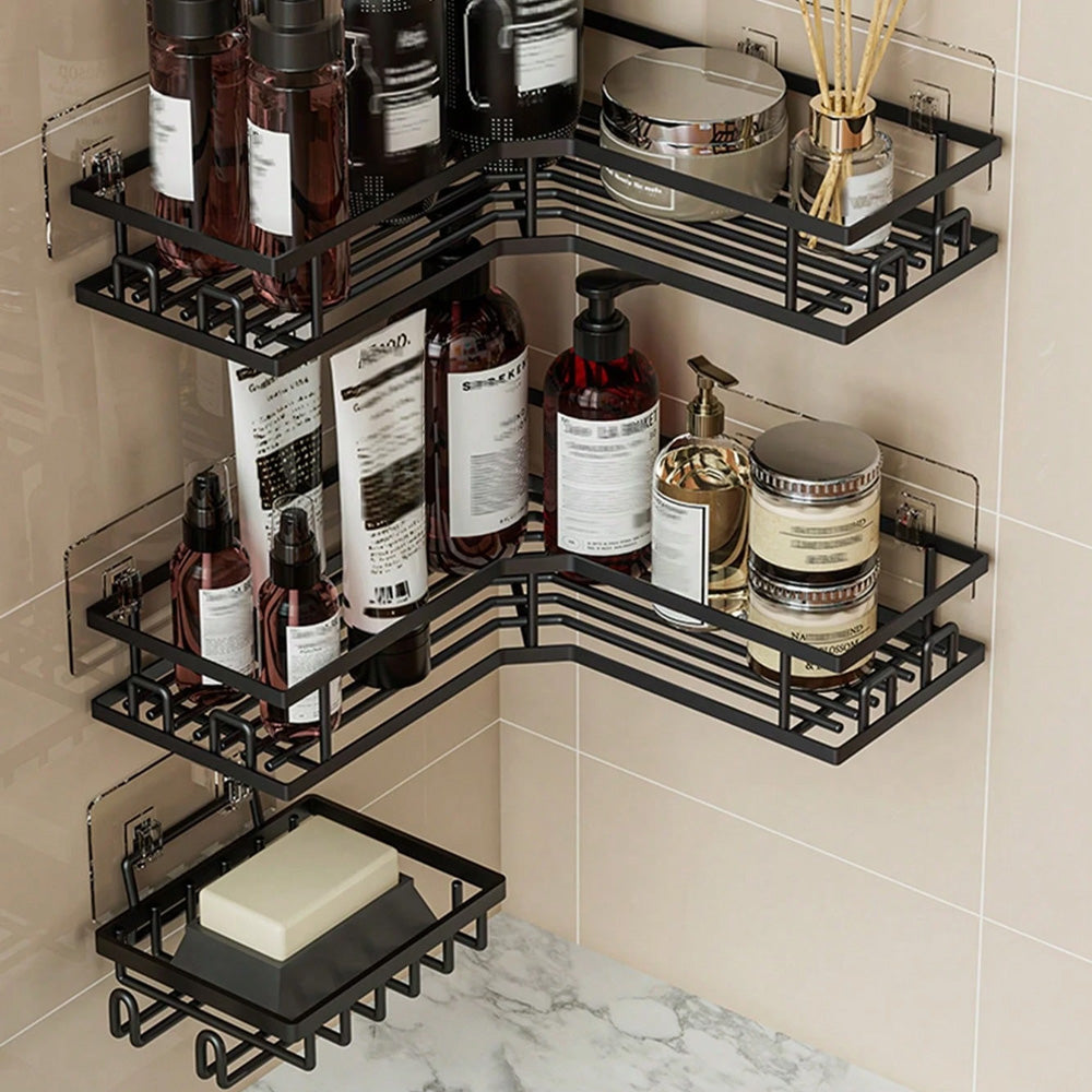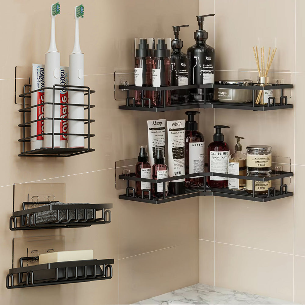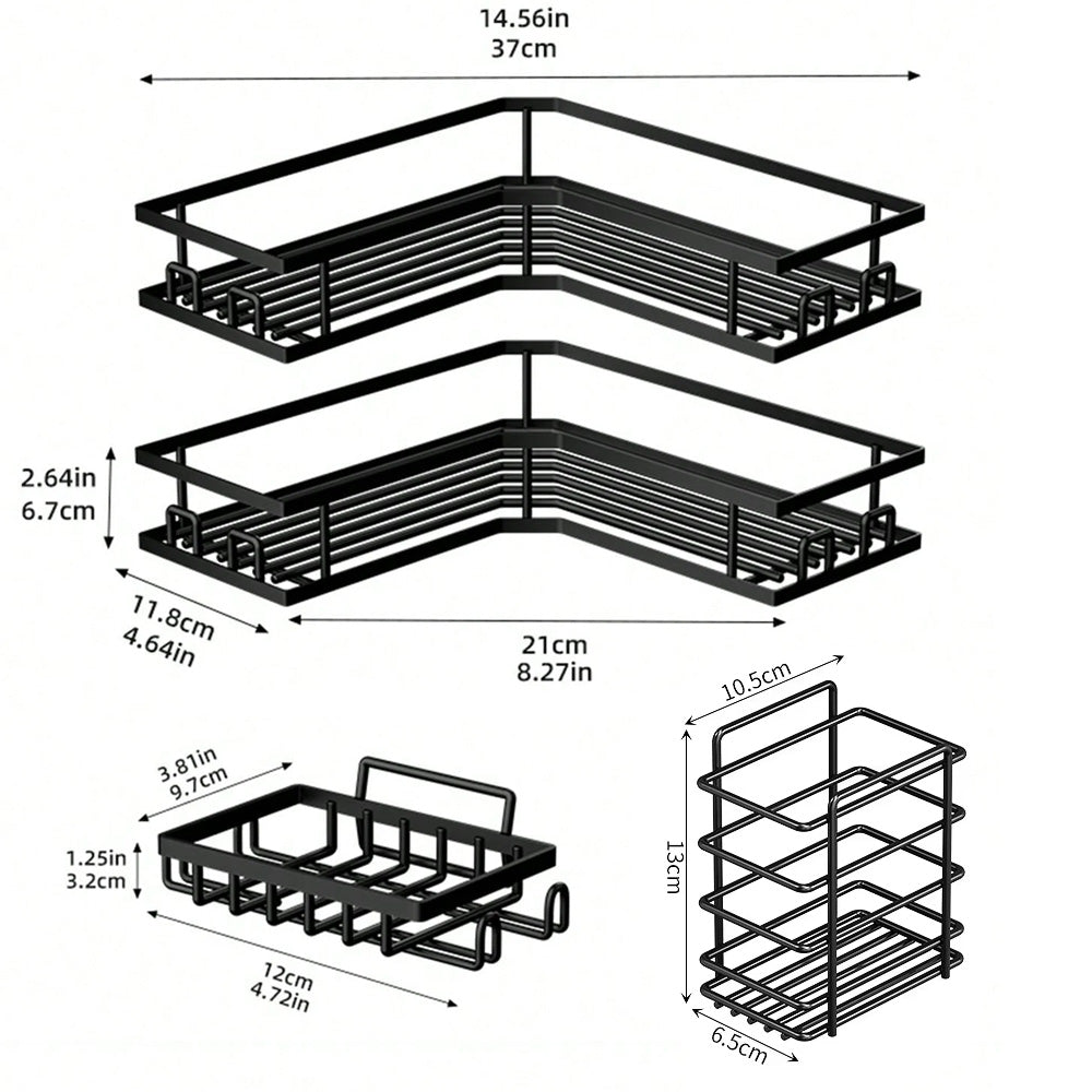 يتميز هذا الطقم برفين زاوية، وحاملين للصابون، وحامل واحد لفرشاة الأسنان، مما يوفر حلاً متكاملاً للتخزين دون الحاجة إلى حفر أو إتلاف جدرانك.