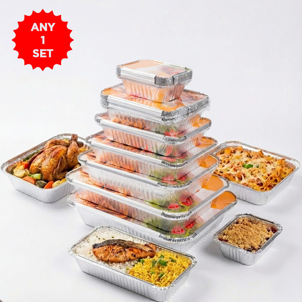 مجموعة علب طعام من رقائق الألومنيوم مع أغطية