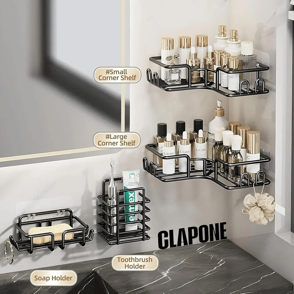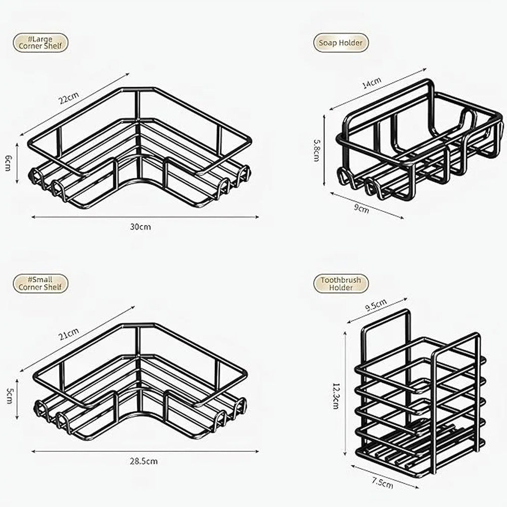 مجموعة منظم حمام زاوية بدون حفر، مكونة من 4 قطع
