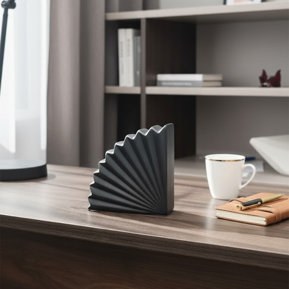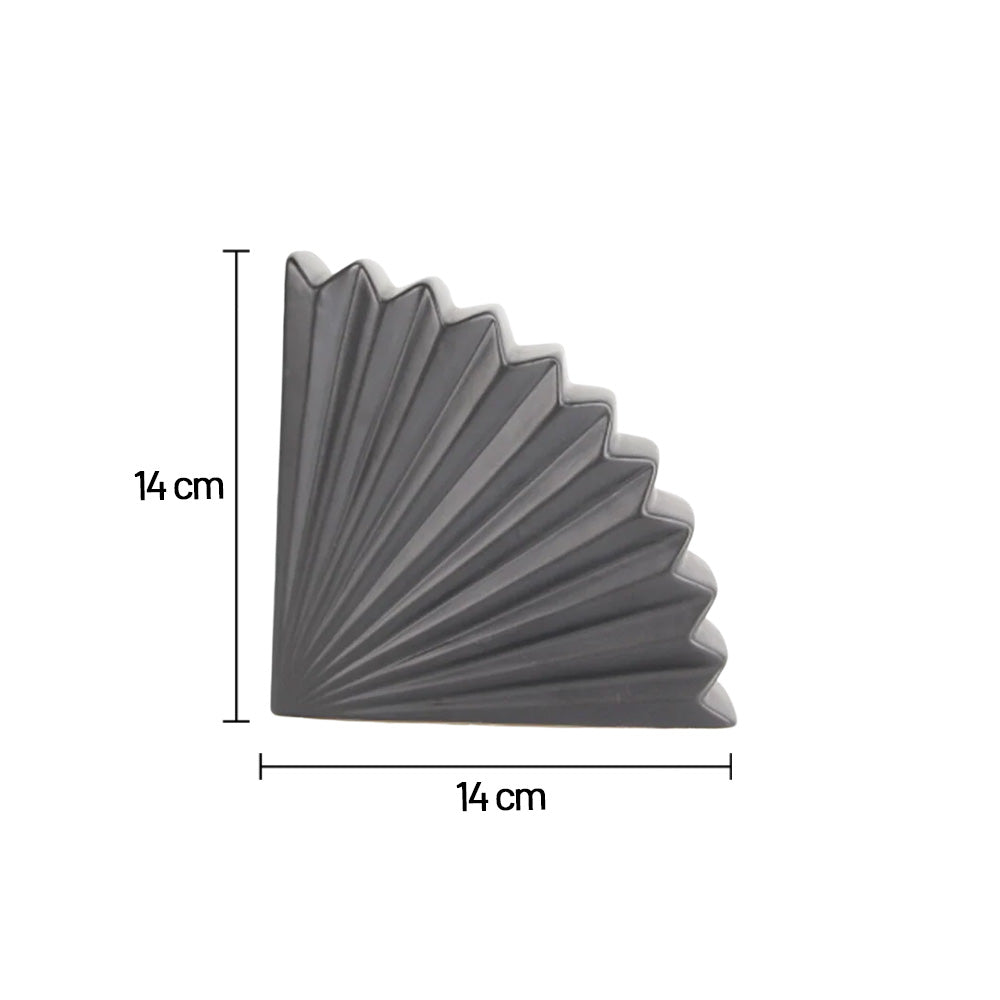 ارتقِ بمساحتك الداخلية مع منحوتة السيراميك الهندسية الحديثة، وهي قطعة بسيطة تجمع بين الفن والرقي. مصنوعة من سيراميك عالي الجودة، تتميز هذه القطعة الزخرفية النحتية بتصميم مستوحى من المروحة المطوية، مما يضفي عمقًا وأناقة على أي مكان.