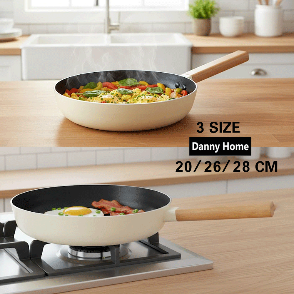🖤 مقلاة طهي غير لاصقة مع مقبض خشبي – قيمة استثنائية مقابل المال
