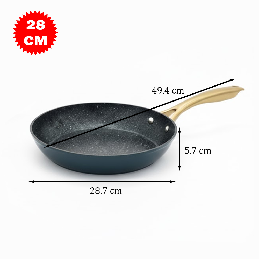 مزودة بطلاء حجري متين غير لاصق يوزّع الحرارة بالتساوي ويمنع التصاق الطعام، مما يجعلها مثالية للقلي والتحمير والطهي الصحي بدون دهون زائدة.