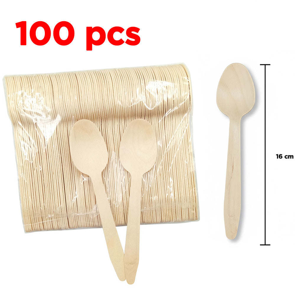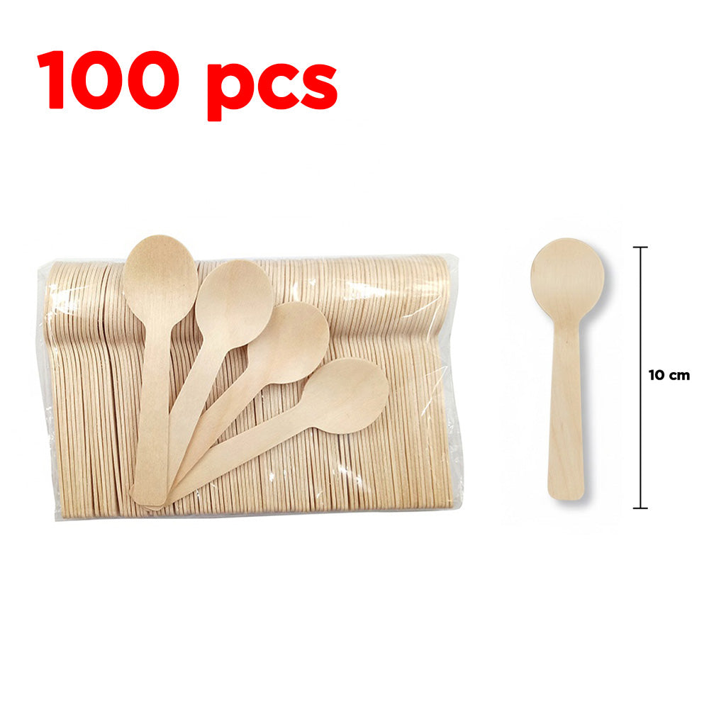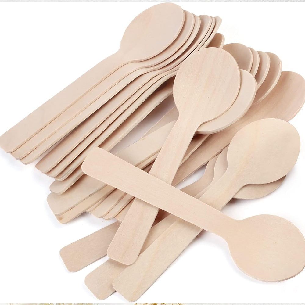 ملاعق خشبية للاستخدام مرة واحدة (100 قطعة)