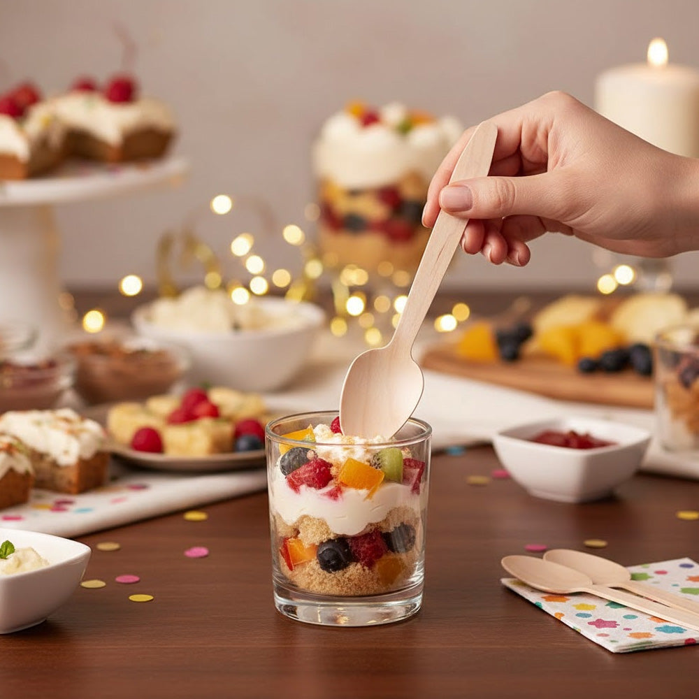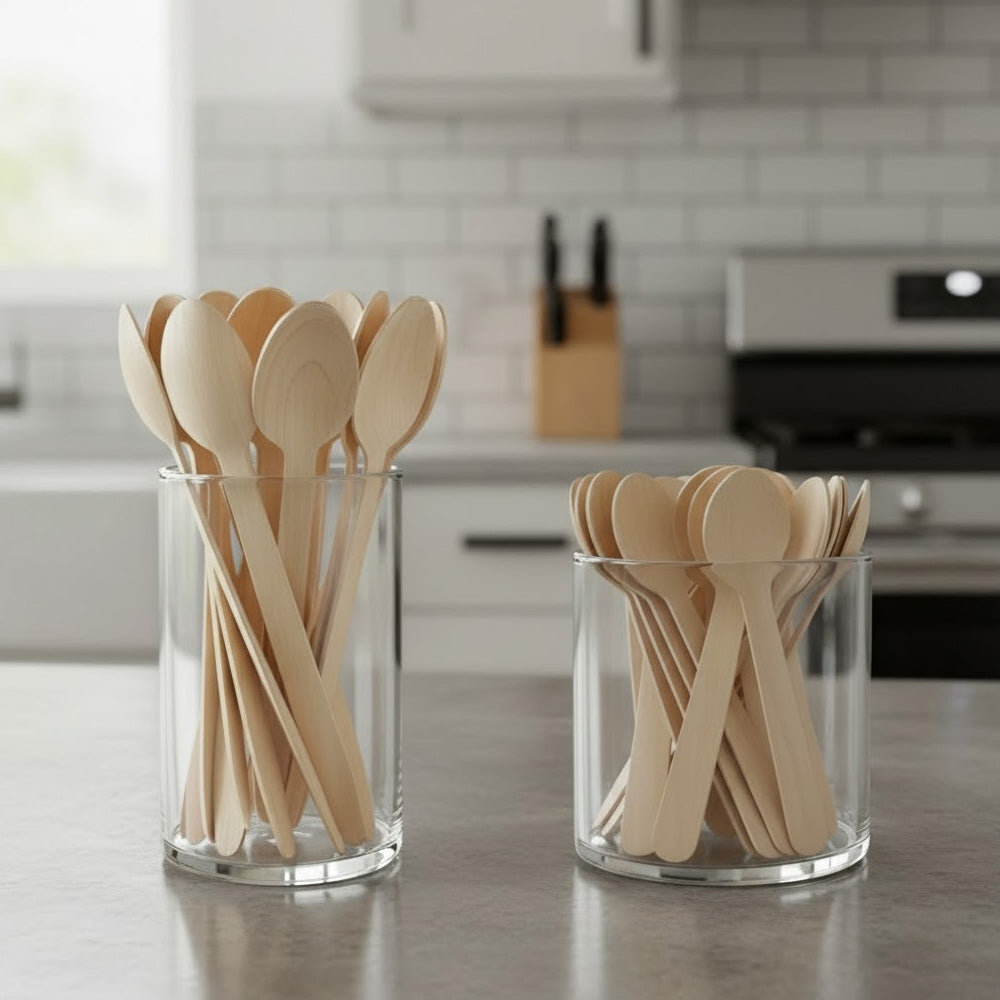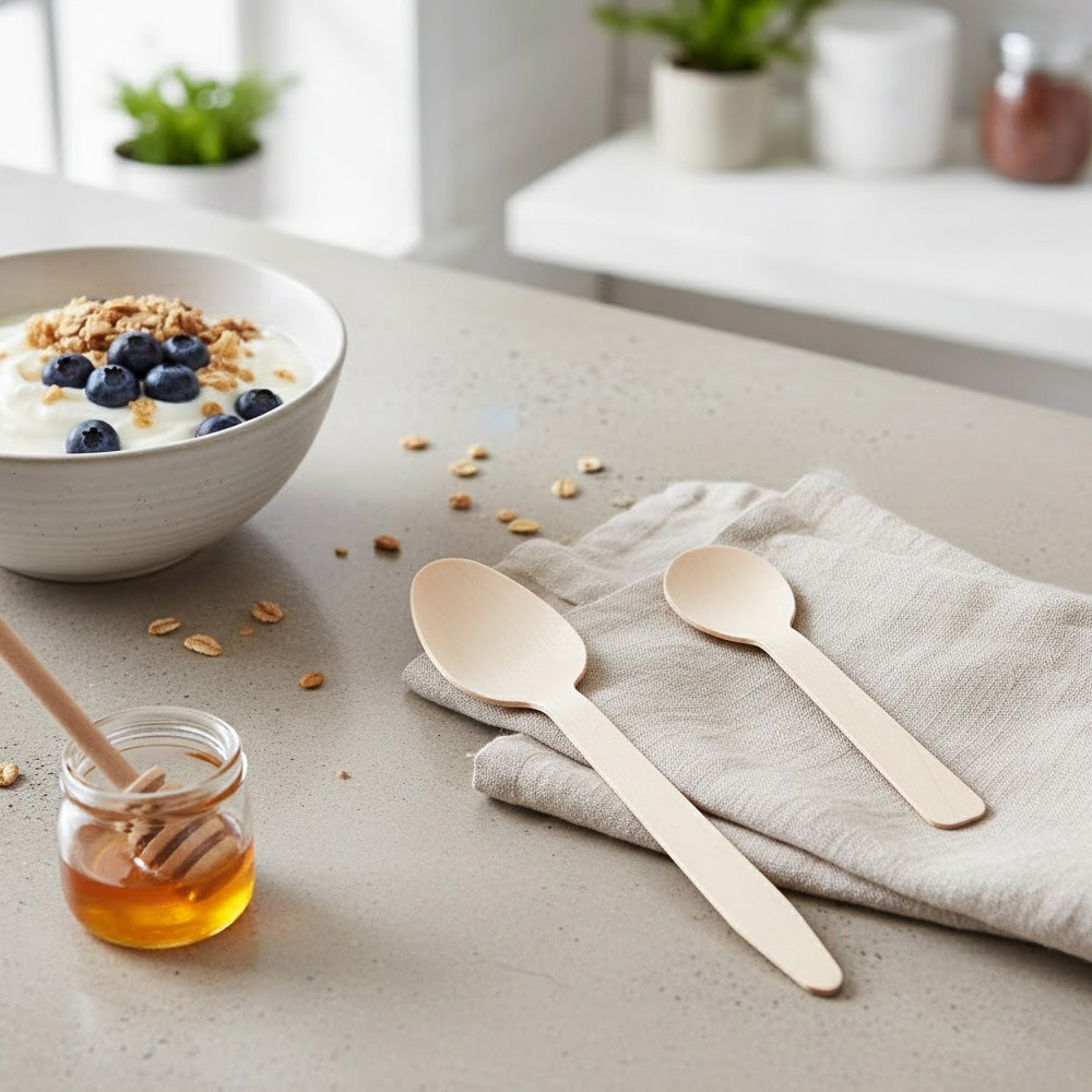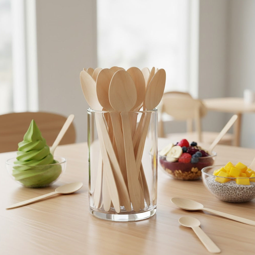 ملاعق خشبية للاستخدام مرة واحدة (100 قطعة)