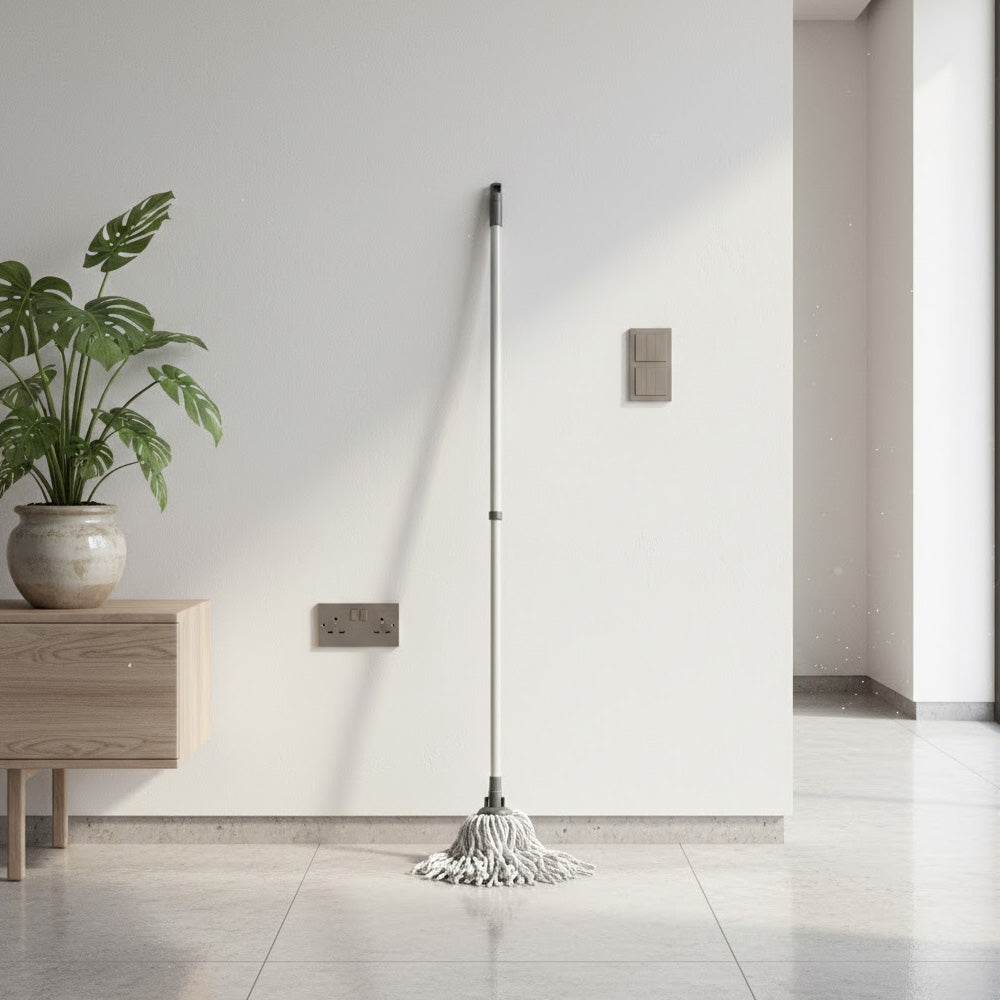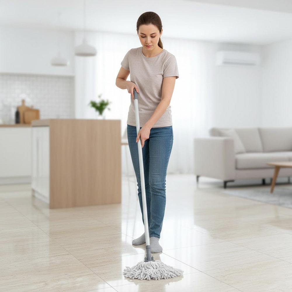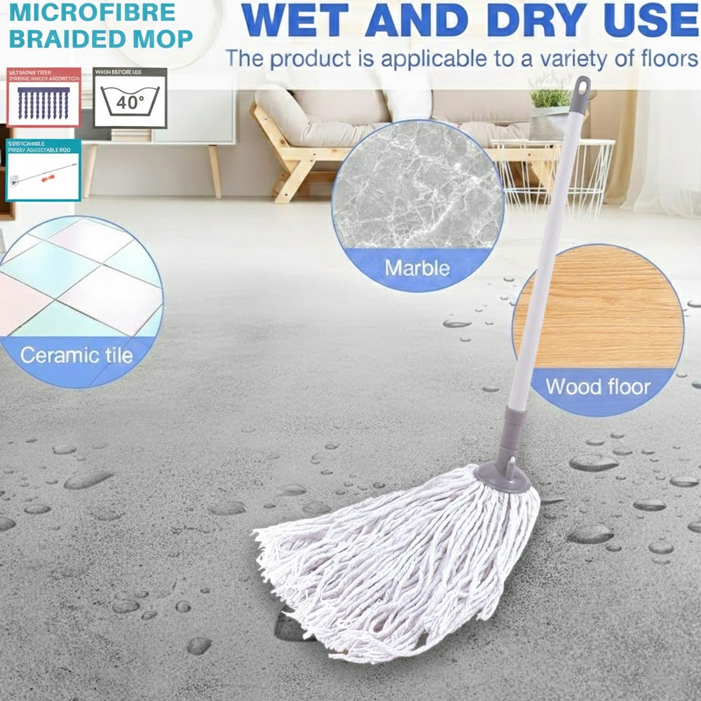 يمتد المقبض القابل للتعديل حتى 123 سم لراحة الاستخدام، وينكمش إلى 69 سم لسهولة التخزين. رأس الممسحة قابل للغسل (حتى 40 درجة مئوية)، مما يجعله قابلاً لإعادة الاستخدام وصديقًا للبيئة.