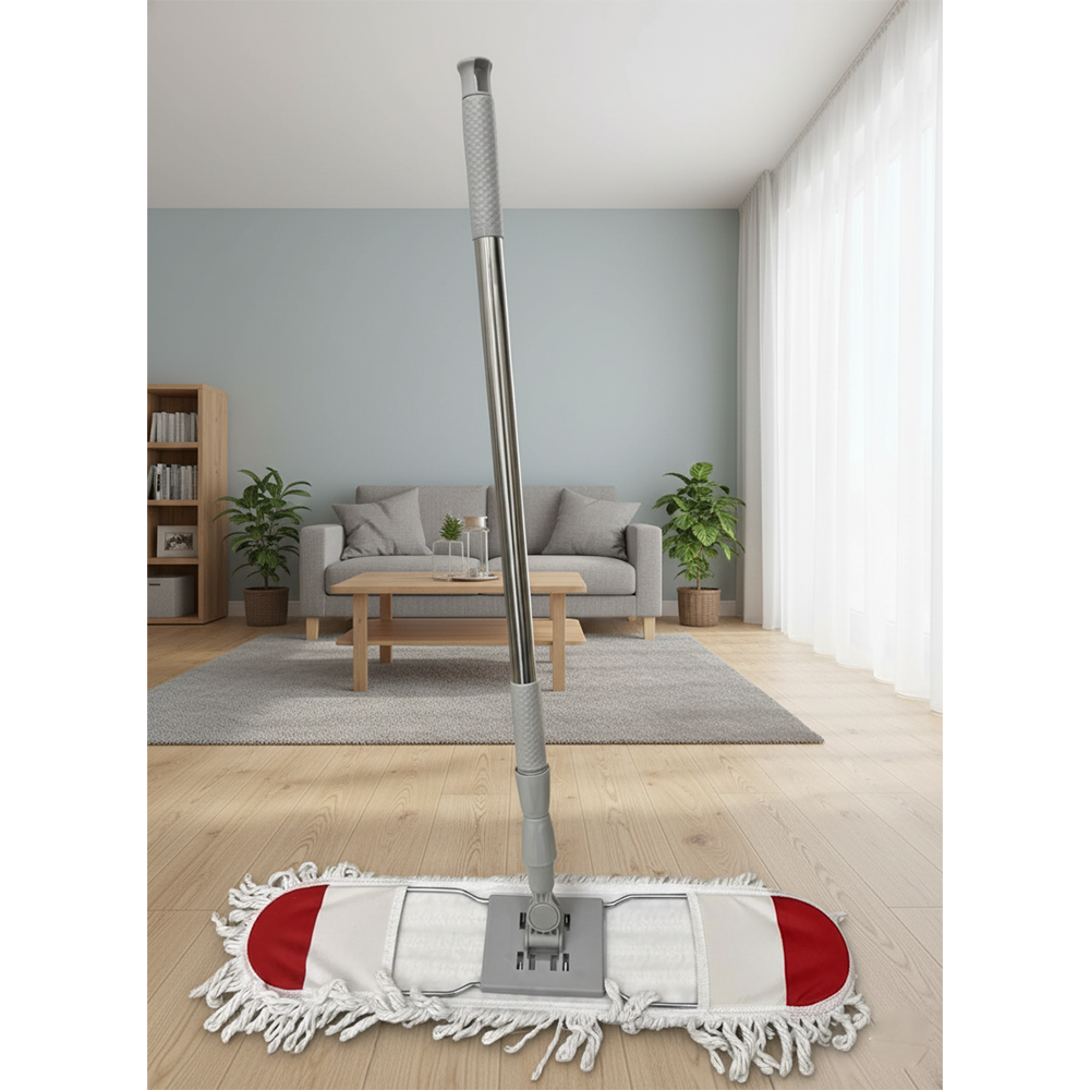 رأس الممسحة العريض (63 سم) مصمم ليمكّنك من تنظيف الأرضيات بسرعة وفعالية، بينما القماش القطني القابل للغسيل يضمن لكِ نتائج ممتازة في كل مرة.
