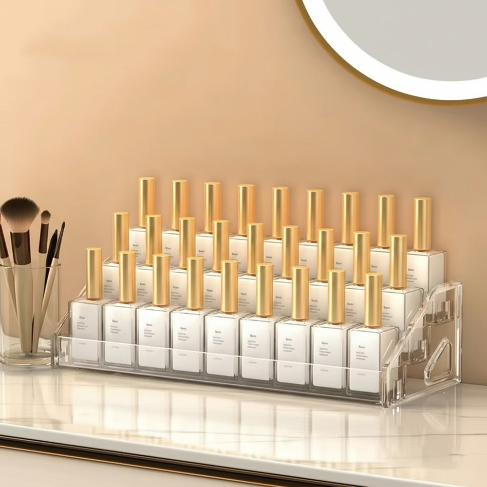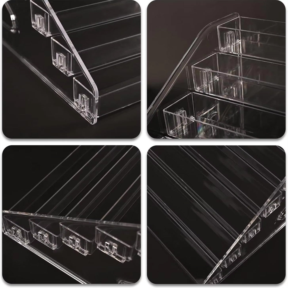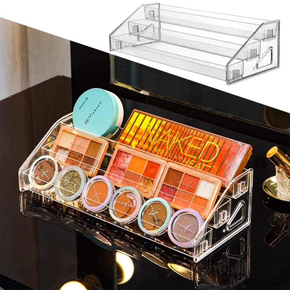 منظم أكريليك شفاف بثلاث طبقات متدرجة، مصمم لعرض وتخزين لوحات المكياج، ومنتجات العناية بالبشرة، والعلب الصغيرة، والإكسسوارات بشكل أنيق. حجمه الصغير (31 × 13 × 8.5 سم) يجعله مناسبًا للمكاتب، وطاولات التجميل، والأرفف، بينما يُبقي تصميمه الشفاف المنتجات مرئية ويسهل الوصول إليها. مثالي لتنظيم مستحضرات التجميل أو عرض المنتجات الصغيرة.