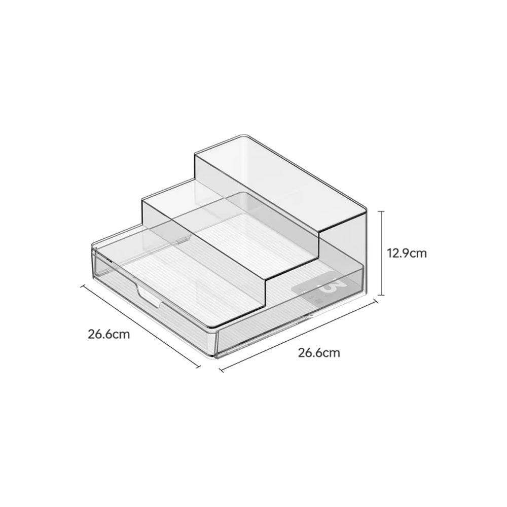 استفد من مساحتك مع منظم التخزين متعدد المستويات الأنيق والعصري هذا المصنوع من الأكريليك الشفاف. مصنوع من أكريليك متين وعالي الجودة، يُعد هذا الحل التخزيني متعدد الاستخدامات مثاليًا لتنظيم مستلزمات المطبخ، ولوازم المكتب، وأدوات الحمام. بفضل تصميمه الشفاف، يتيح لك رؤية أغراضك والوصول إليها بسهولة، بينما يوفر هيكله متعدد المستويات تنظيمًا مثاليًا مع الحد الأدنى من استخدام المساحة.