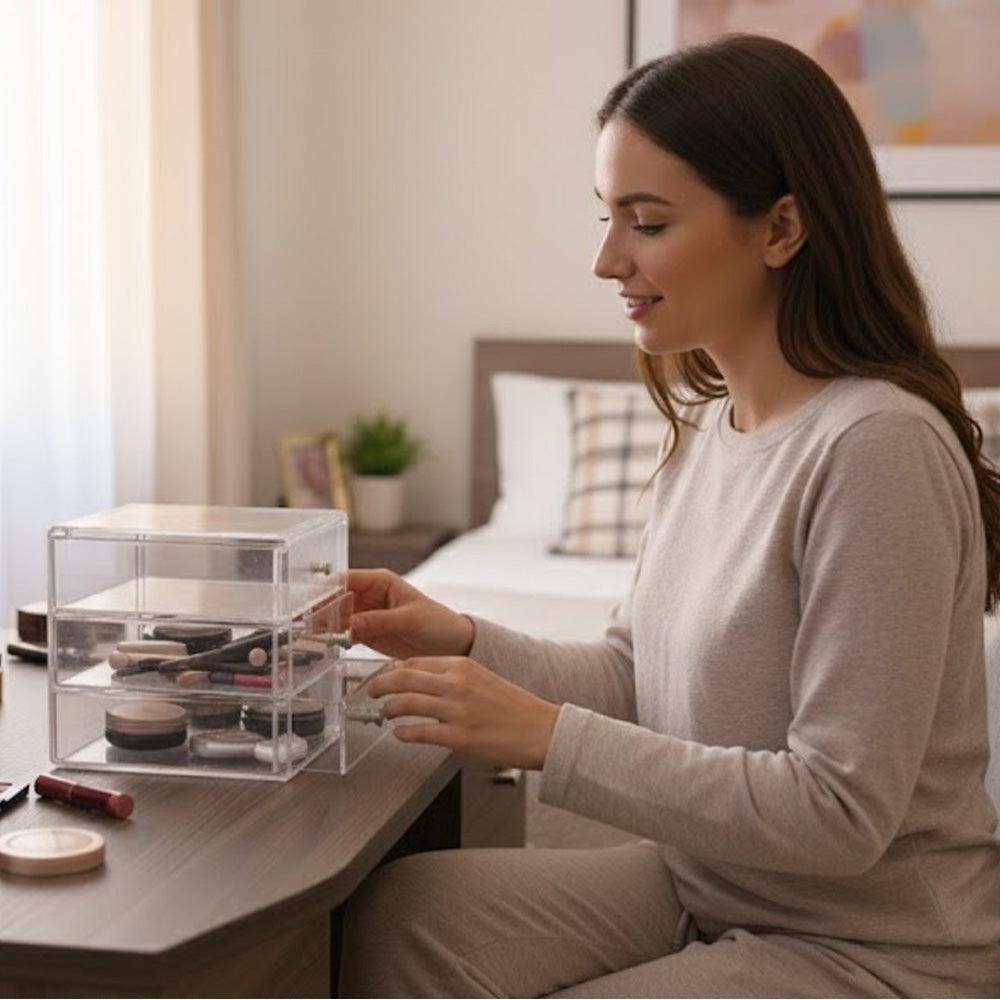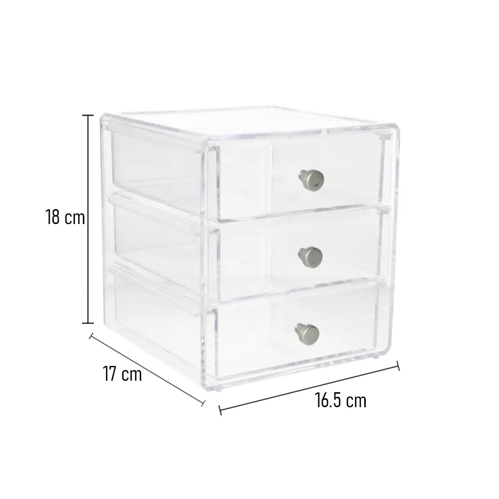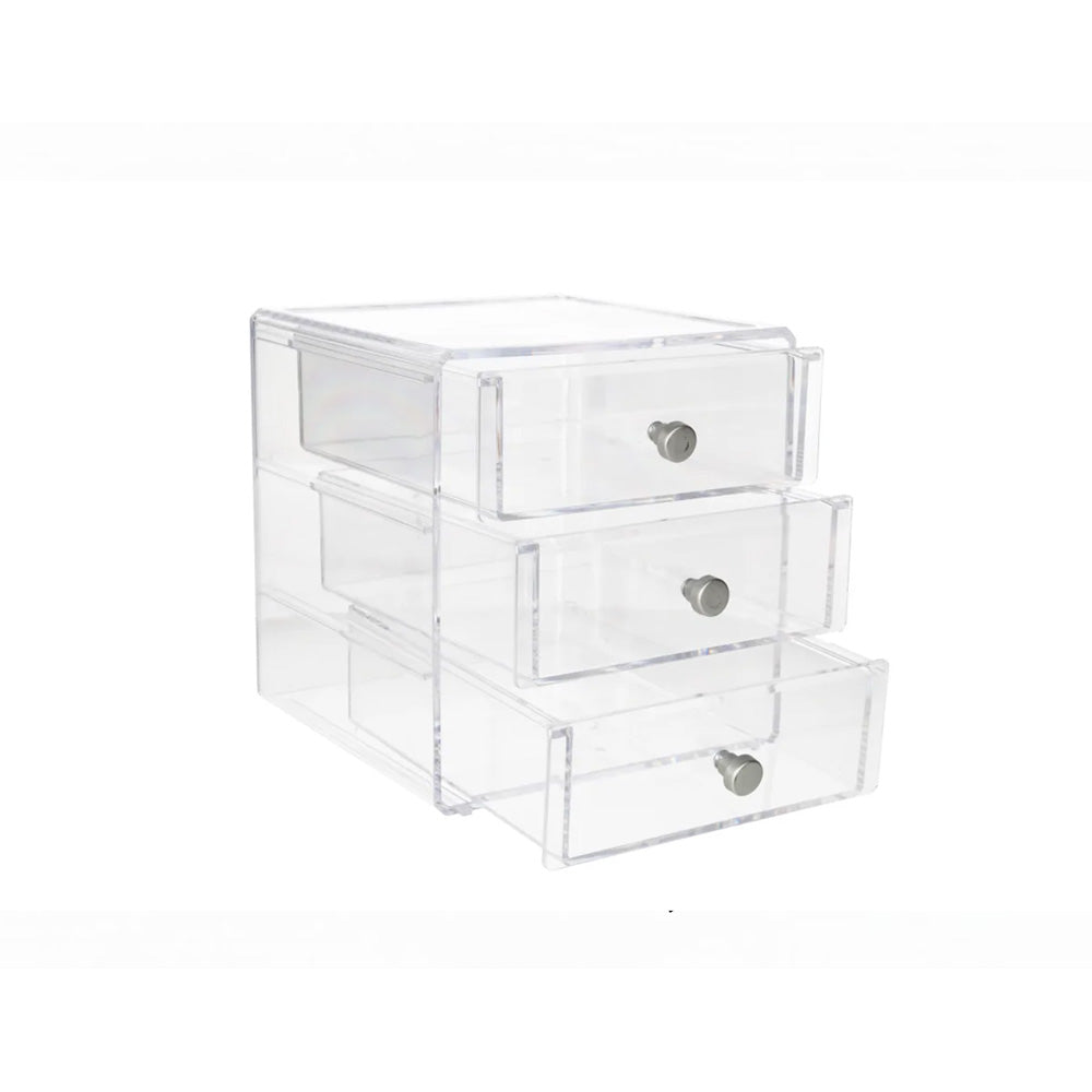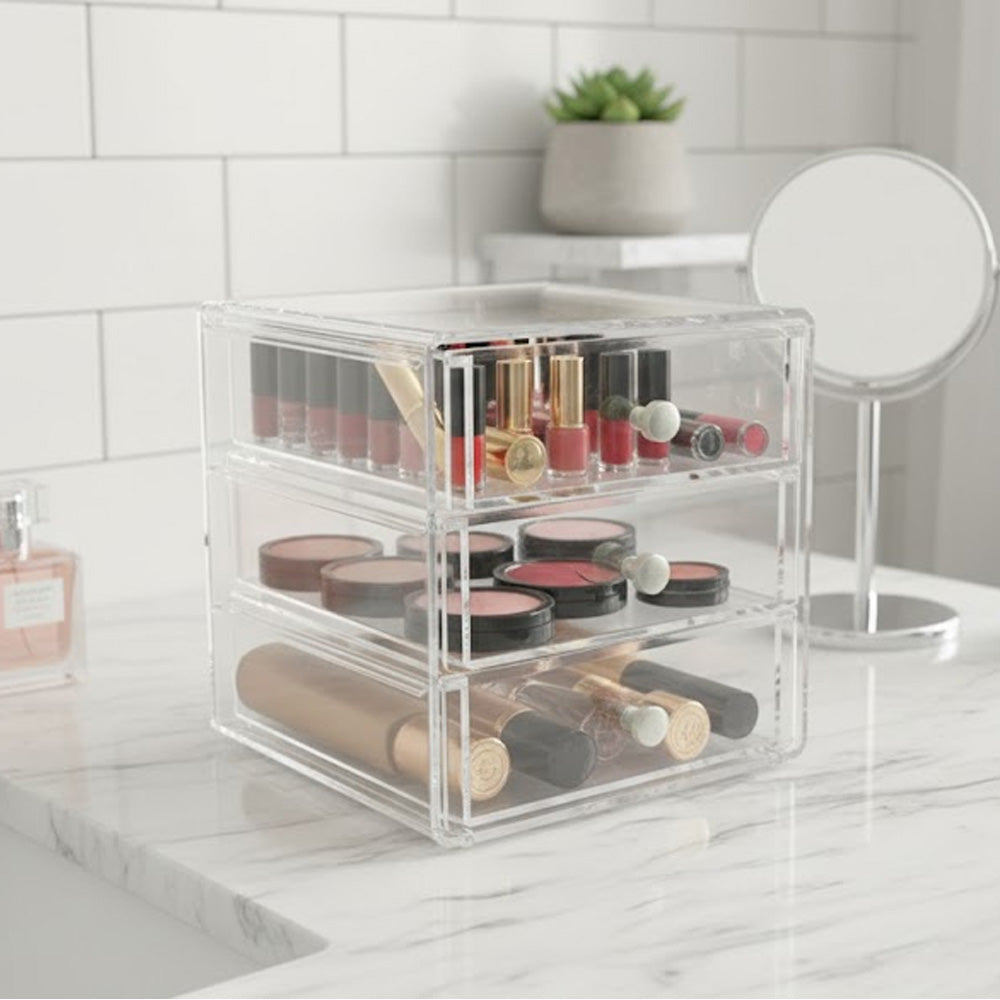 حافظي على تنظيمكِ وأناقتكِ مع منظم المكياج الشفاف هذا بثلاثة أدراج، المصنوع من الأكريليك. مثالي لتخزين المكياج، والمجوهرات، ومنتجات العناية بالبشرة، والإكسسوارات الصغيرة، فهو مصمم للحفاظ على أساسياتكِ مرتبةً وسهلة الوصول. ينزلق كل درج بسلاسة، مما يوفر مساحةً واسعةً لأحمر الشفاه، وكريم الأساس، والبودرة، وغيرها. تصميمه الأنيق والشفاف يُتيح لكِ العثور على أغراضكِ بسرعة، بينما يجعله حجمه الصغير (18 سم × 17 سم × 16.5 سم) إضافةً مثاليةً لأي طاولة تزيين، أو حمام، أو منضدة زينة. ارتقِ بتجربة التخزين لديكِ مع منظم الأكريليك المتين وسهل التنظيف، المصمم ليجمع بين الجمال والعملية.