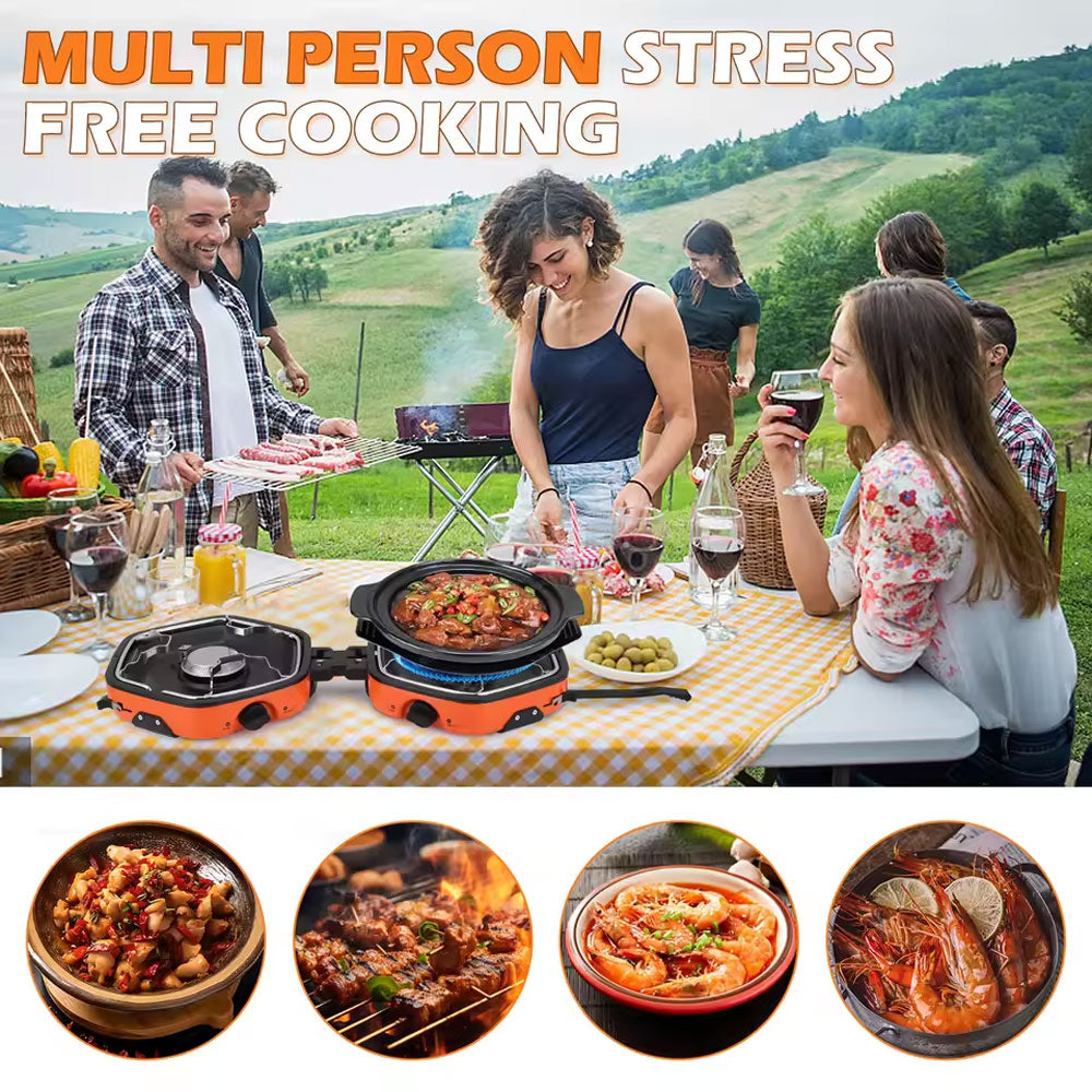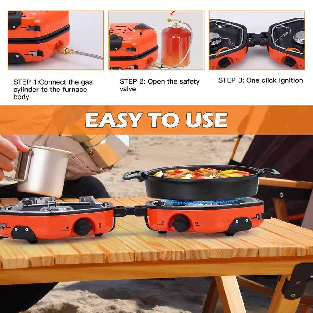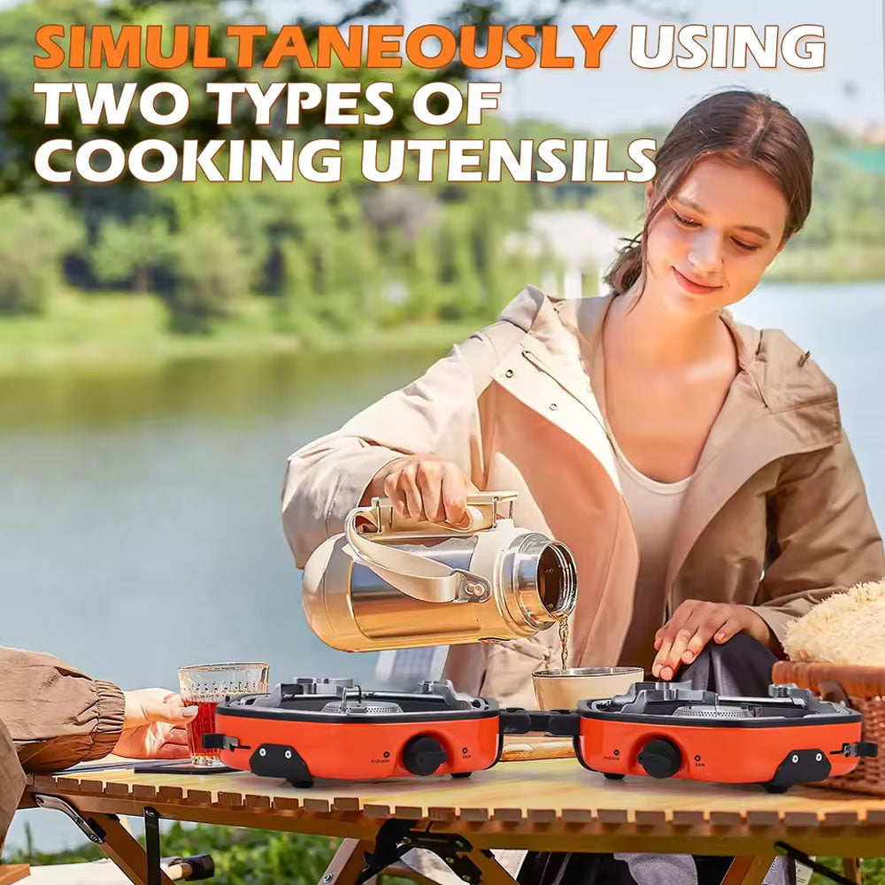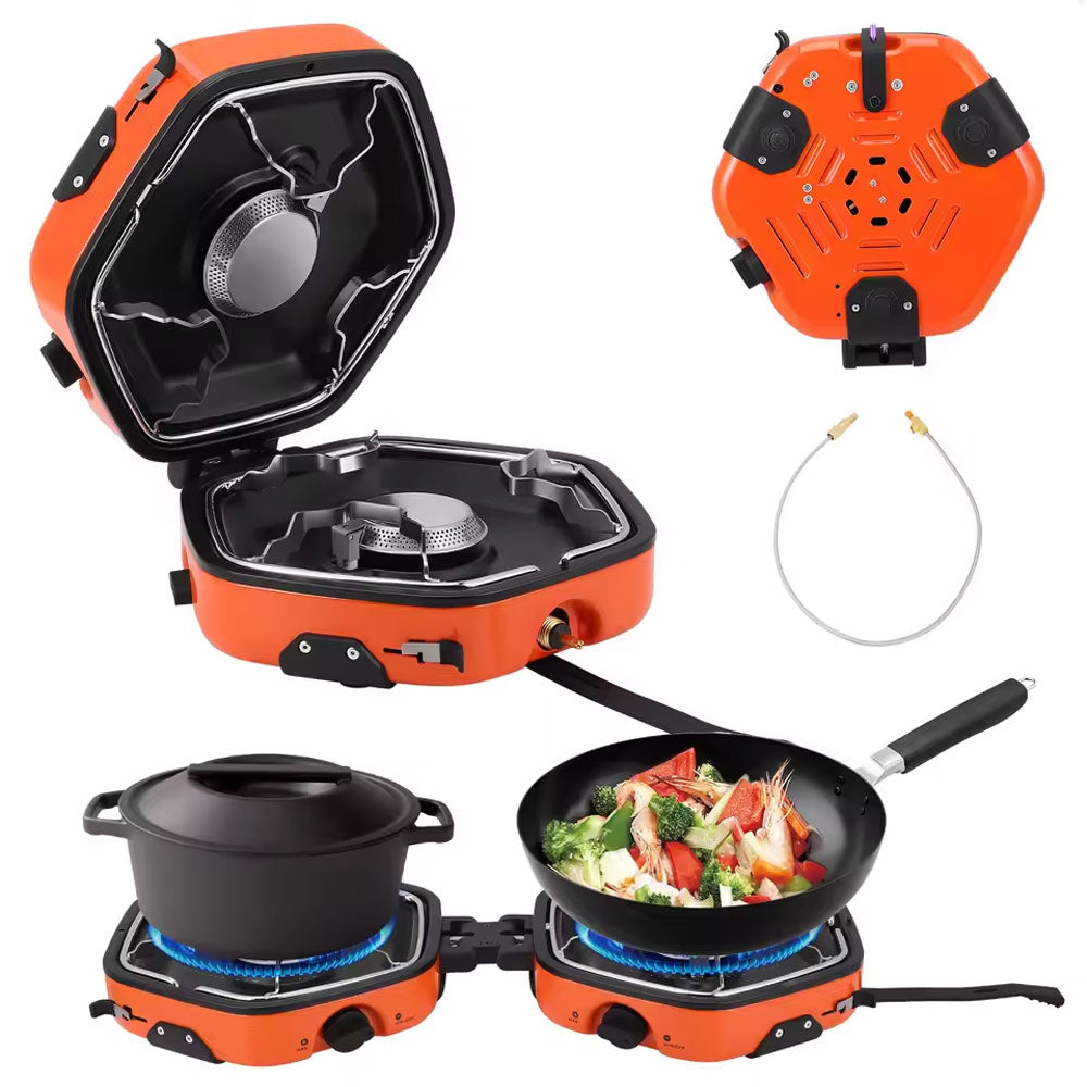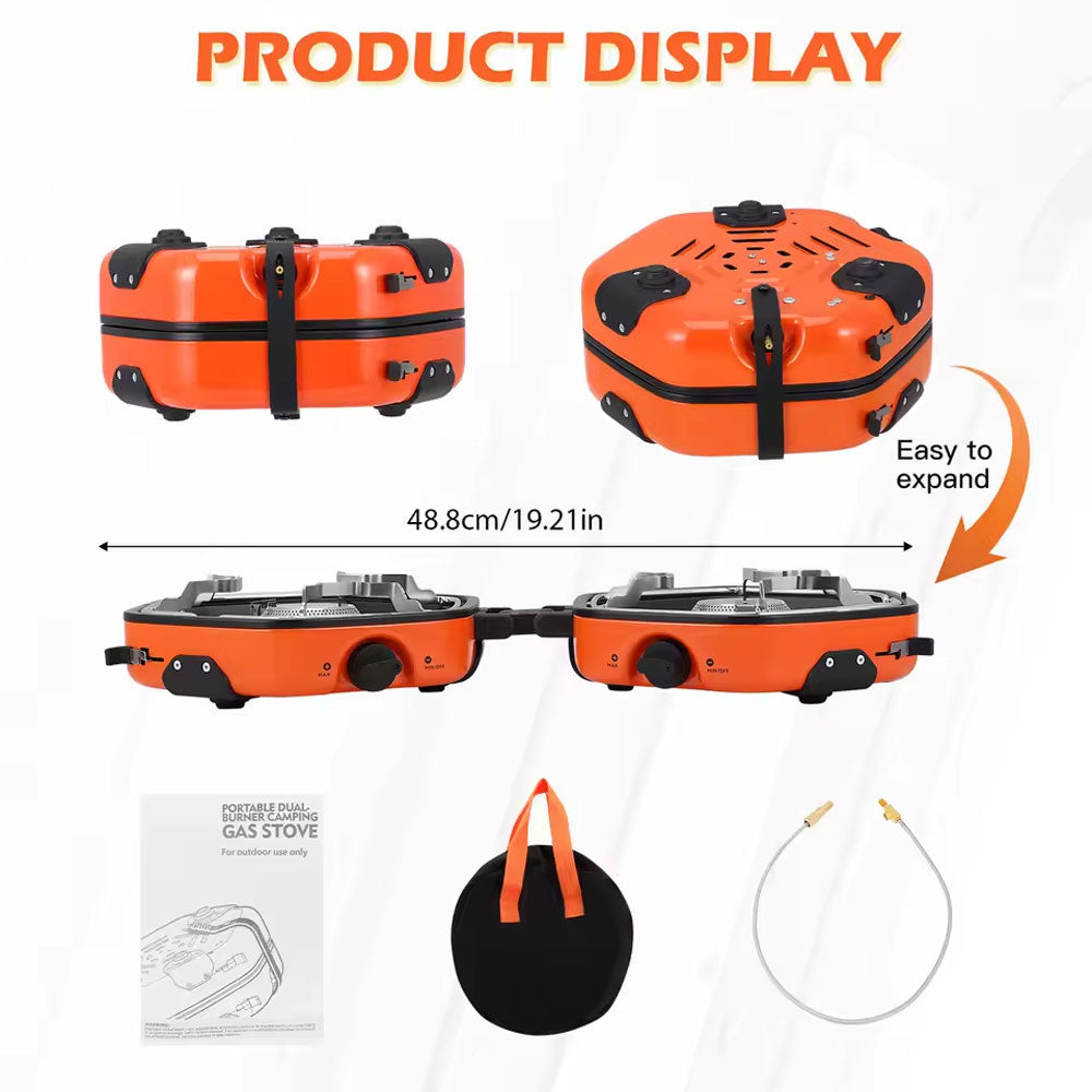 موقد تخييم مزود بشعلتين مع حقيبة حمل، موقد غاز قابل للطي محمول، بقوة 17000 وحدة حرارية بريطانية، موقد تخييم للرحلات الخلفية للطهي في الهواء الطلق