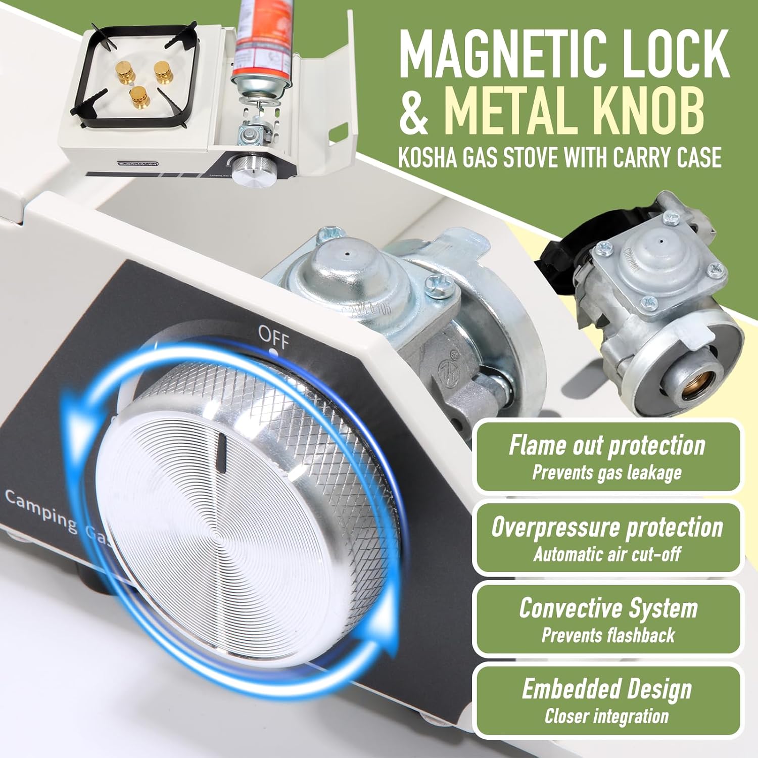 4. إعداد مريح: تم تصميم ملاعب التخييم الخاصة بنا مع تركيب مغناطيسي بسيط وآمن للإعداد الخالي من النحاس ، في حين أن غطاء النار النحاسي المصبوب دقائق تضمن نقل الحرارة الصغيرة. عدد وقت الضجيج والجهد باستخدام هذا الموقد الموثوق.
