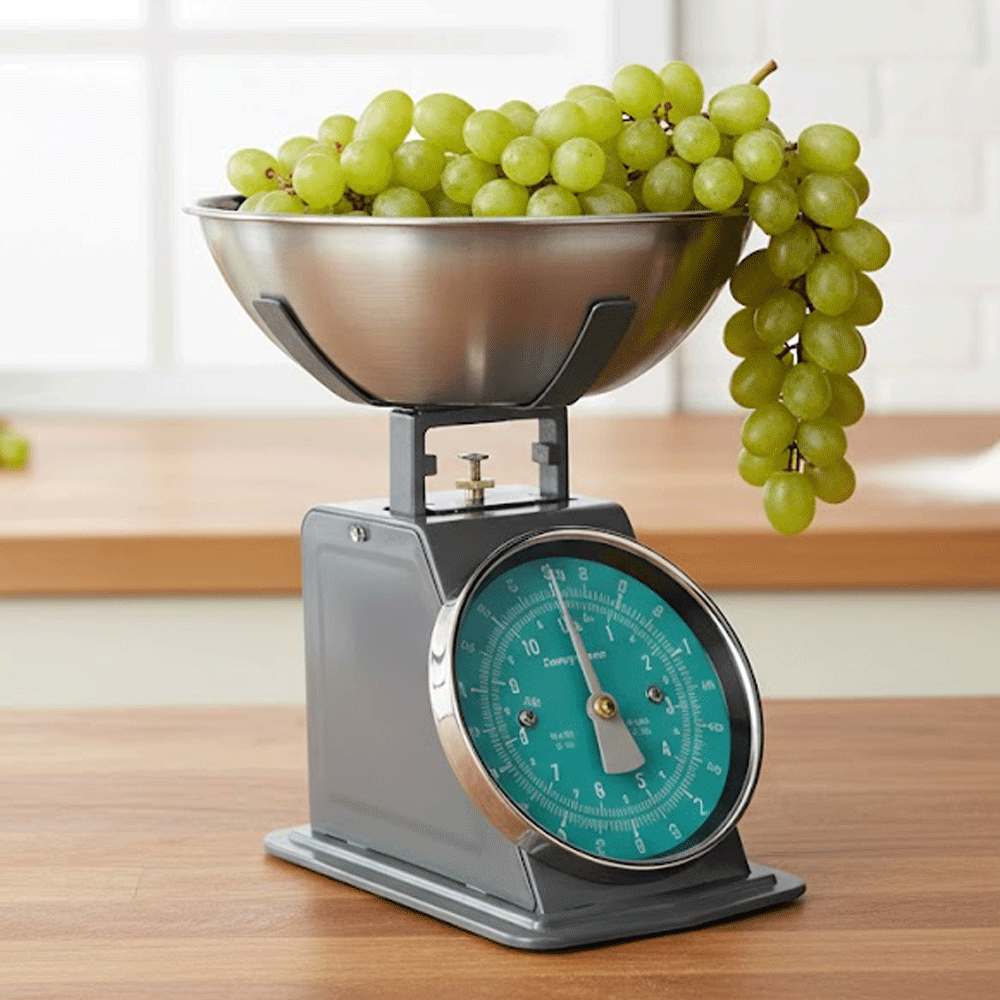 احصل على قياسات دقيقة للخبز والطهي الدقيق مع ميزان المطبخ الميكانيكي الكلاسيكي الأنيق.