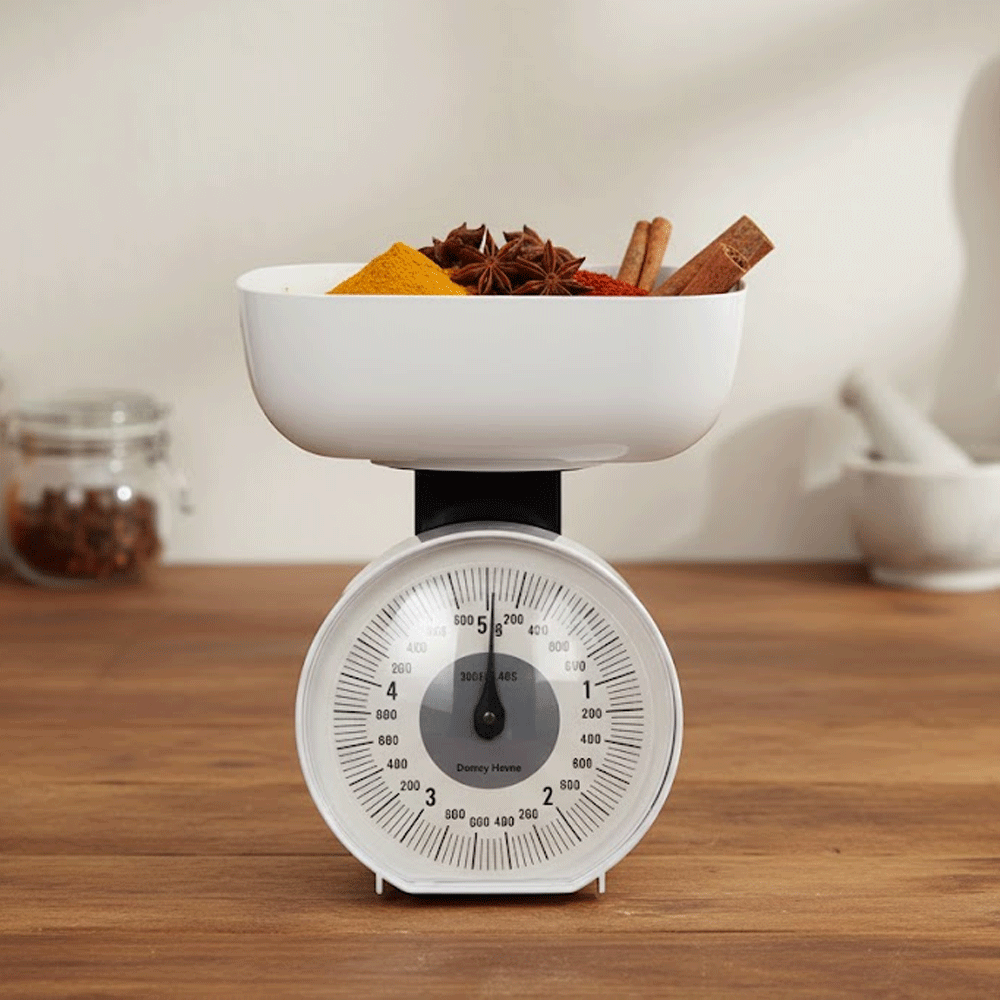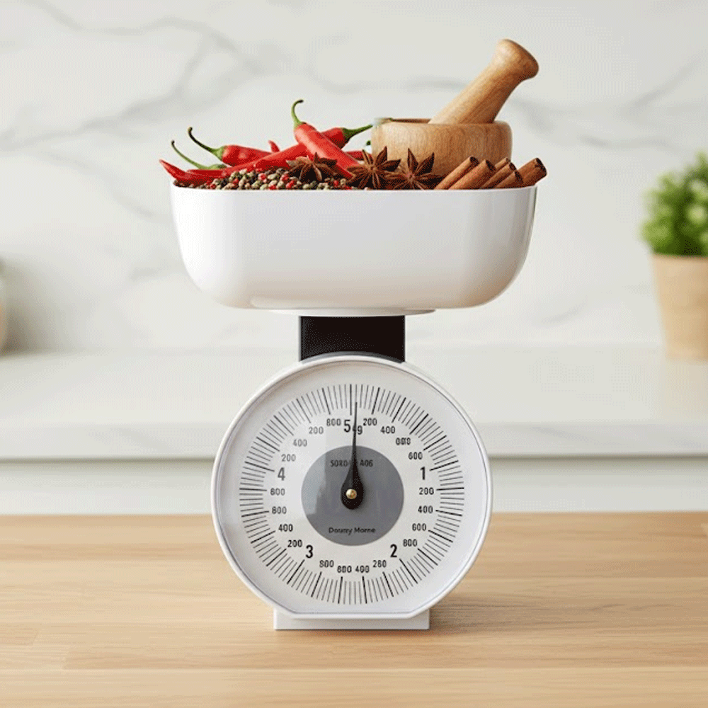 احصل على قياسات دقيقة للخبز والطهي الدقيق مع ميزان المطبخ الميكانيكي الأنيق.