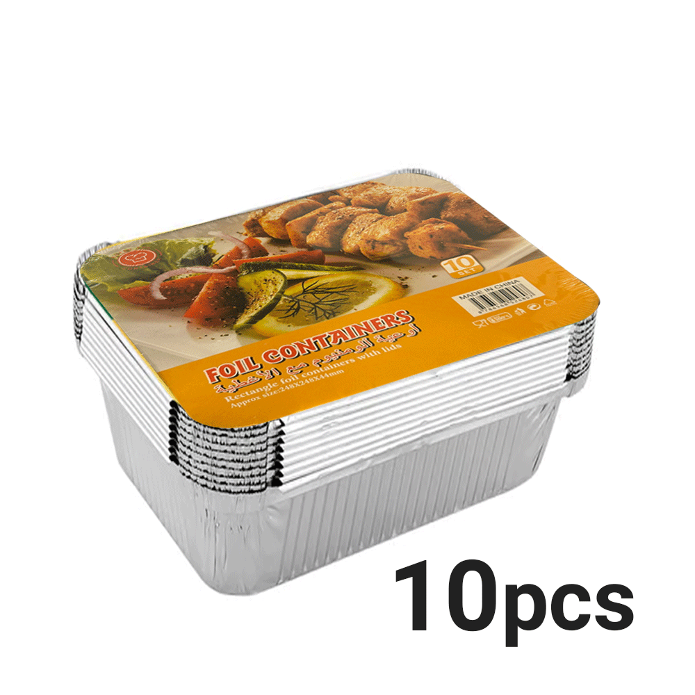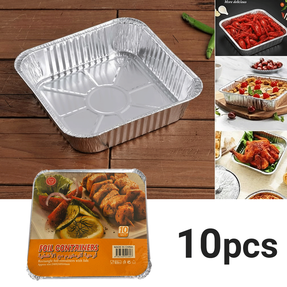 وعاء ألمنيوم مربع كبير 10 قطعة