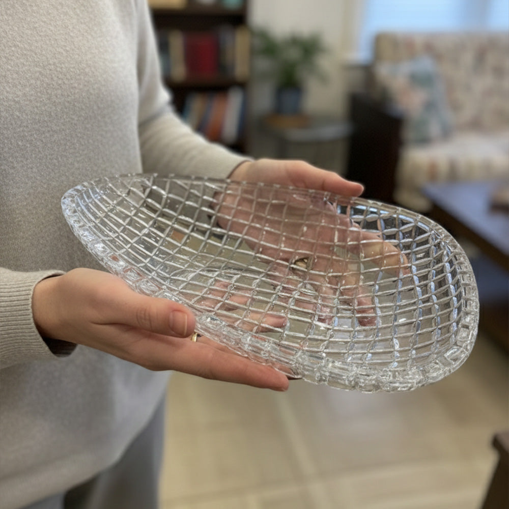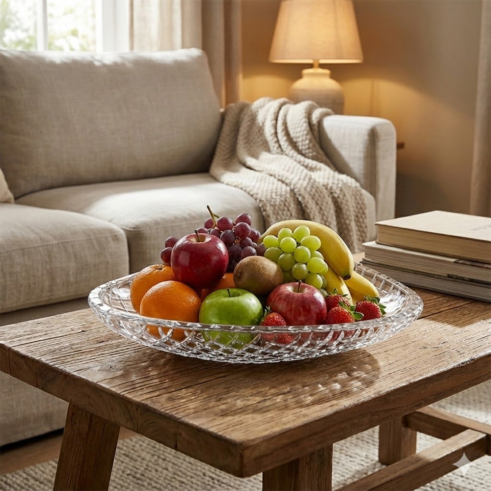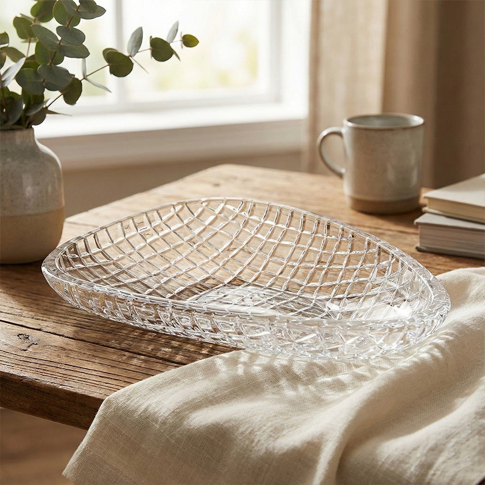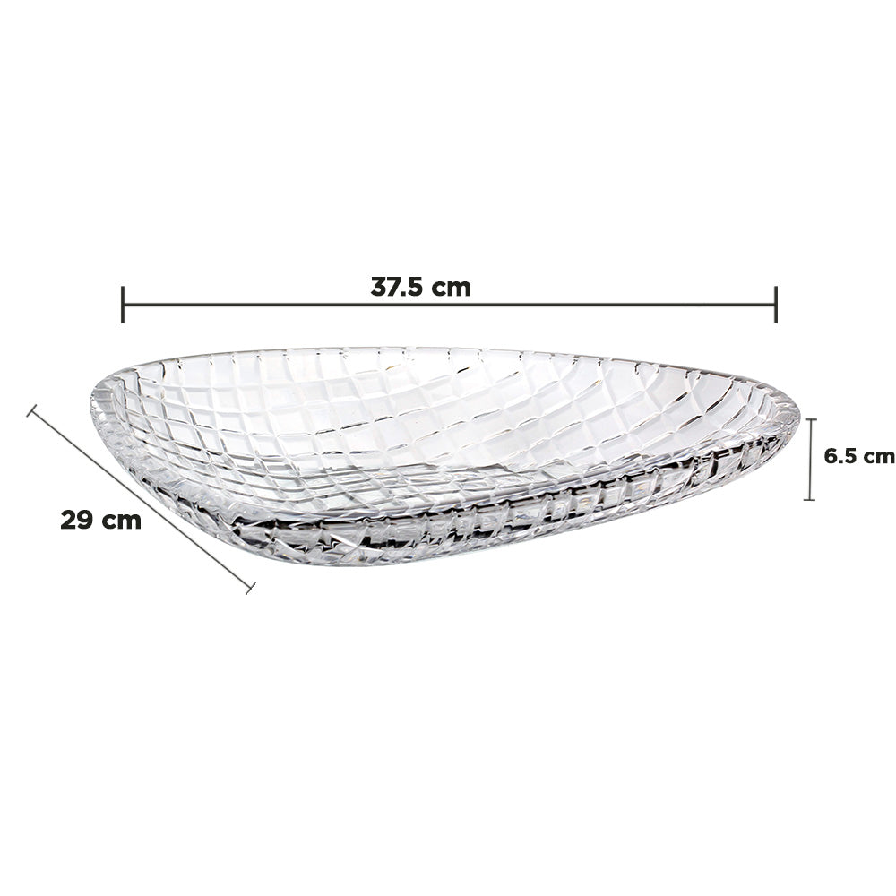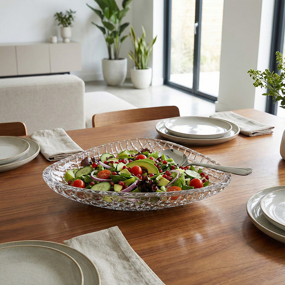 ارتقِ بديكور طاولتك مع هذا الوعاء الأنيق المصنوع من الكريستال، والمصمم بنقش عصري يضفي لمسة من الفخامة على أي منزل. يبلغ طول هذا الوعاء الواسع 37.5 سم، وعرضه 29 سم، وارتفاعه 6.5 سم، وهو مثالي لتقديم الفواكه والسلطات والوجبات الخفيفة، أو لعرض قطع الديكور.