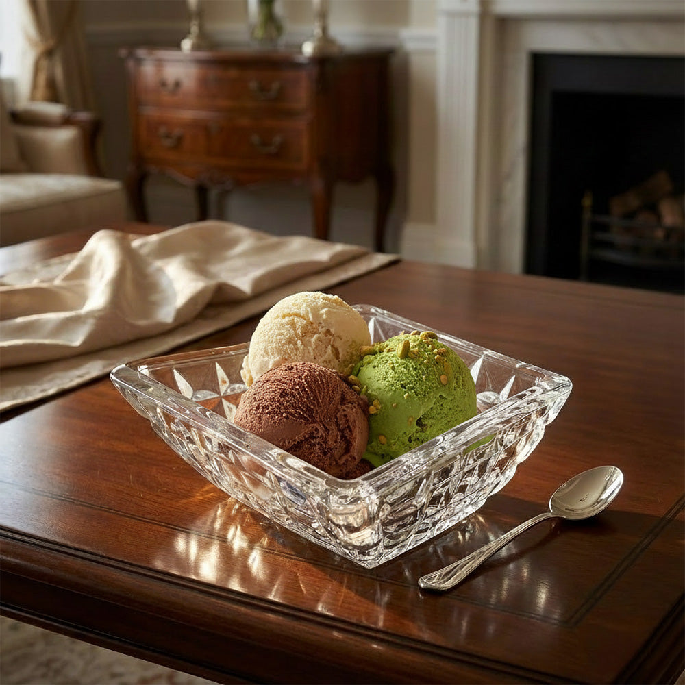 أضف لمسةً مميزةً إلى مائدتك مع وعاء الحلوى الزجاجي الكريستالي المربع الأنيق، المصمم بنمط هندسي أنيق يعكس الضوء بشكلٍ رائع. مصنوع من زجاج شفاف عالي الجودة، يضفي هذا الوعاء لمسةً من الفخامة على أي مناسبة طعام، مثالي لتقديم الآيس كريم والفواكه والمكسرات والسلطات والوجبات الخفيفة والحلويات.