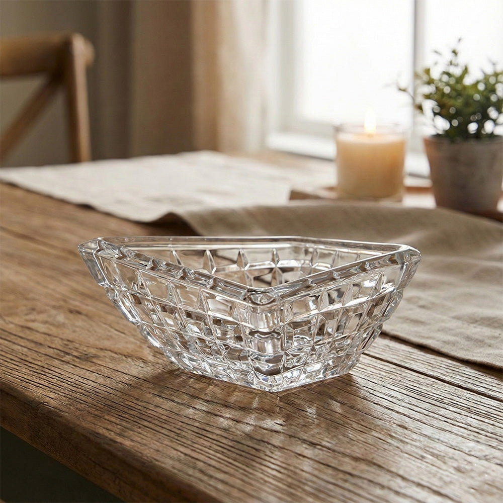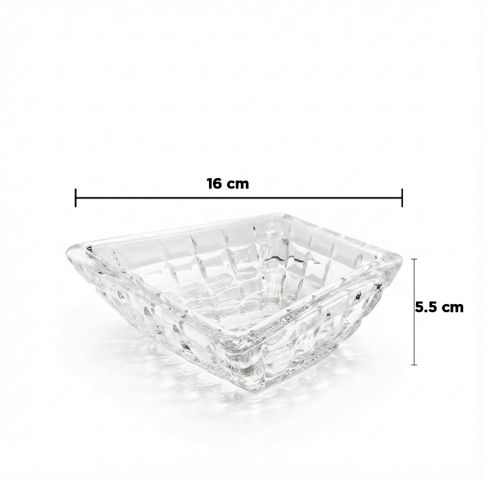 بعرضه البالغ 16 سم وارتفاعه 5.5 سم، يوفر هذا الوعاء الحجم المثالي للاستخدام اليومي والمناسبات الخاصة. يضمن الزجاج المتين والسميك ذو التصميم الكريستالي المتانة مع الحفاظ على مظهرٍ وملمسٍ فاخرين.