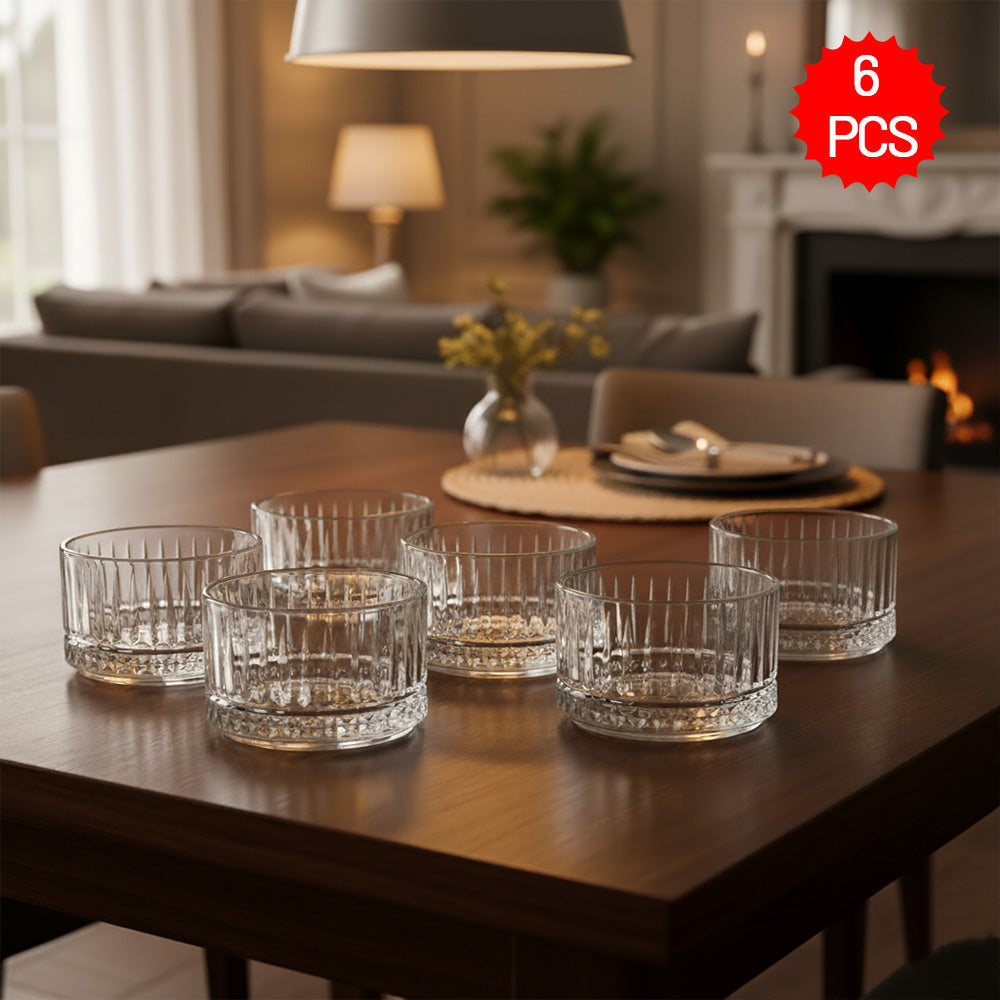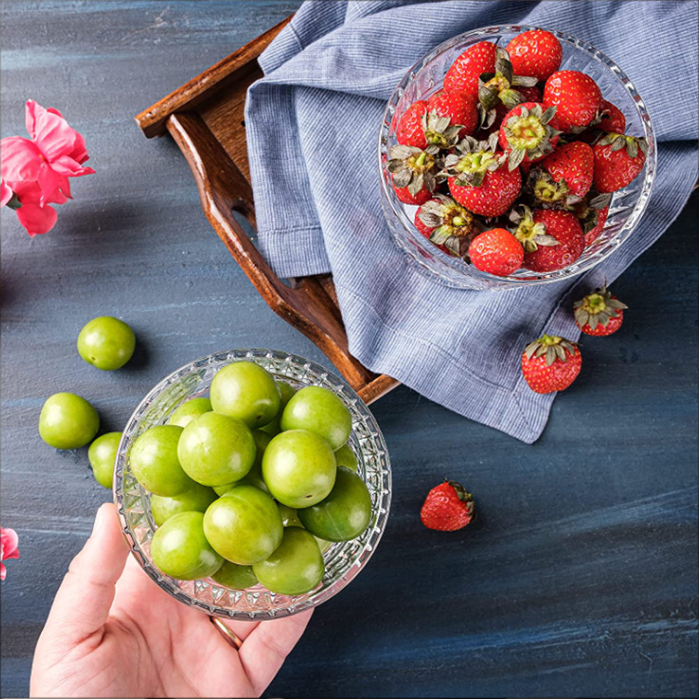 أضف لمسةً من الأناقة الخالدة إلى مائدتك مع وعاء الحلوى الكريستالي الكلاسيكي هذا. بقطر 9 سم وارتفاع 5.5 سم، يُعدّ هذا الوعاء مثاليًا لتقديم الحلويات، والآيس كريم، والفواكه، والوجبات الخفيفة. يُعزز تصميمه الزجاجي المقطوع انعكاس الضوء، مما يمنحه بريقًا راقيًا يُكمل أي مناسبة عشاء. مصنوع من زجاج كريستالي فاخر، يجمع بين المتانة والمظهر الفاخر.