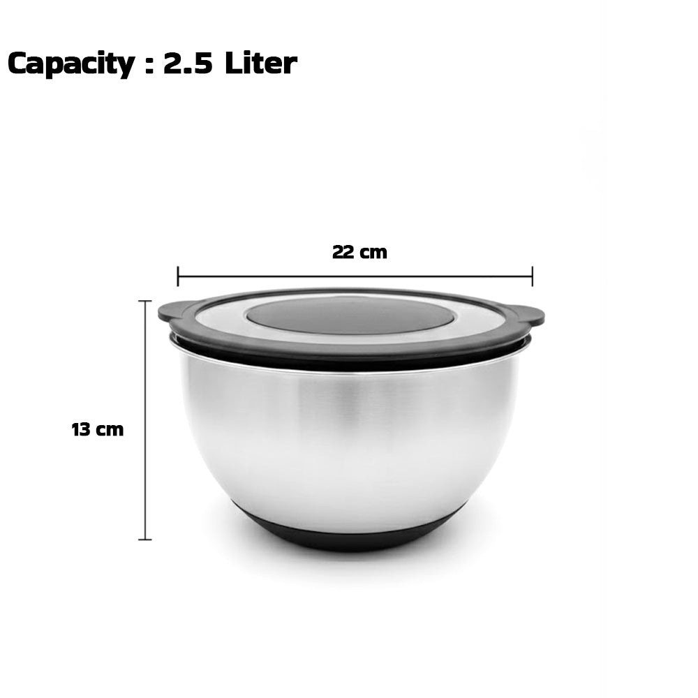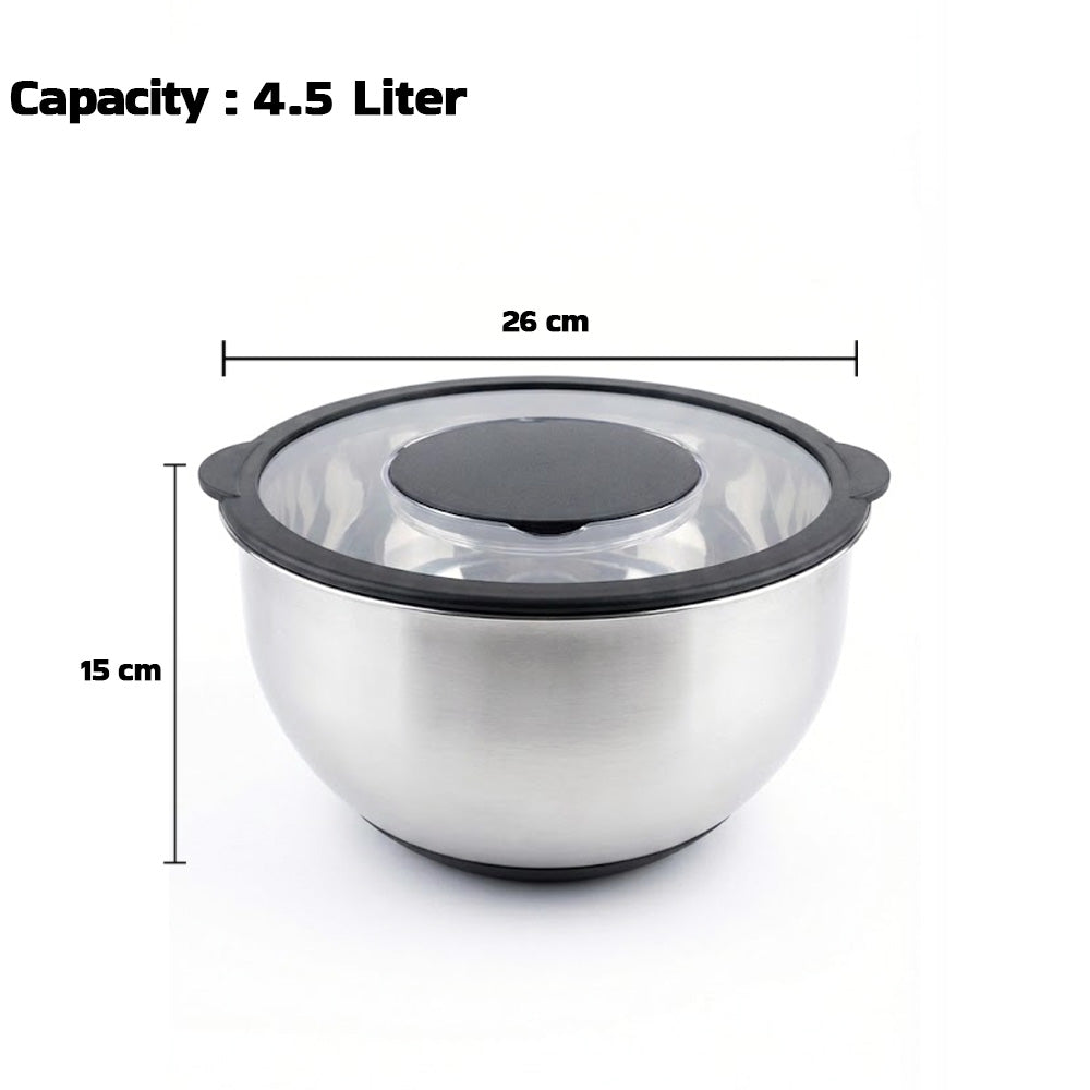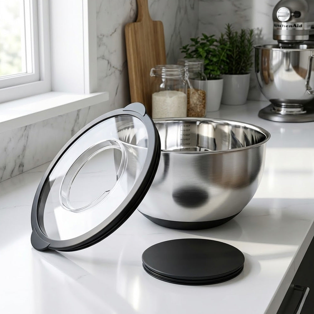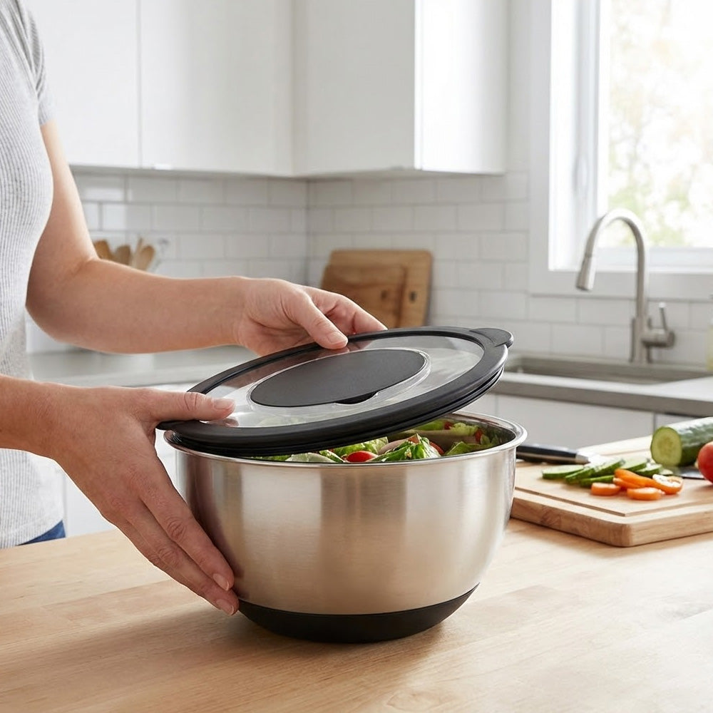 وعاء خلط من الفولاذ المقاوم للصدأ مع غطاء محكم الإغلاق (قاعدة مانعة للانزلاق)