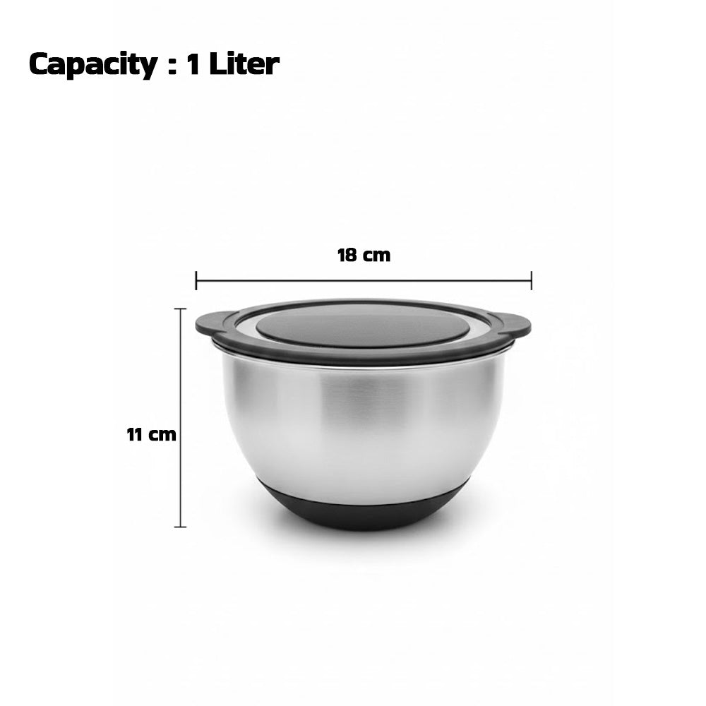 يأتي الوعاء بغطاء شفاف محكم الإغلاق يحافظ على نضارة الطعام ويتيح لك رؤية محتوياته دون الحاجة لفتحه. تضمن القاعدة المصنوعة من السيليكون المانع للانزلاق ثبات الوعاء أثناء الخلط أو الخفق أو التقديم، مما يمنع انسكاب الطعام على سطح العمل.