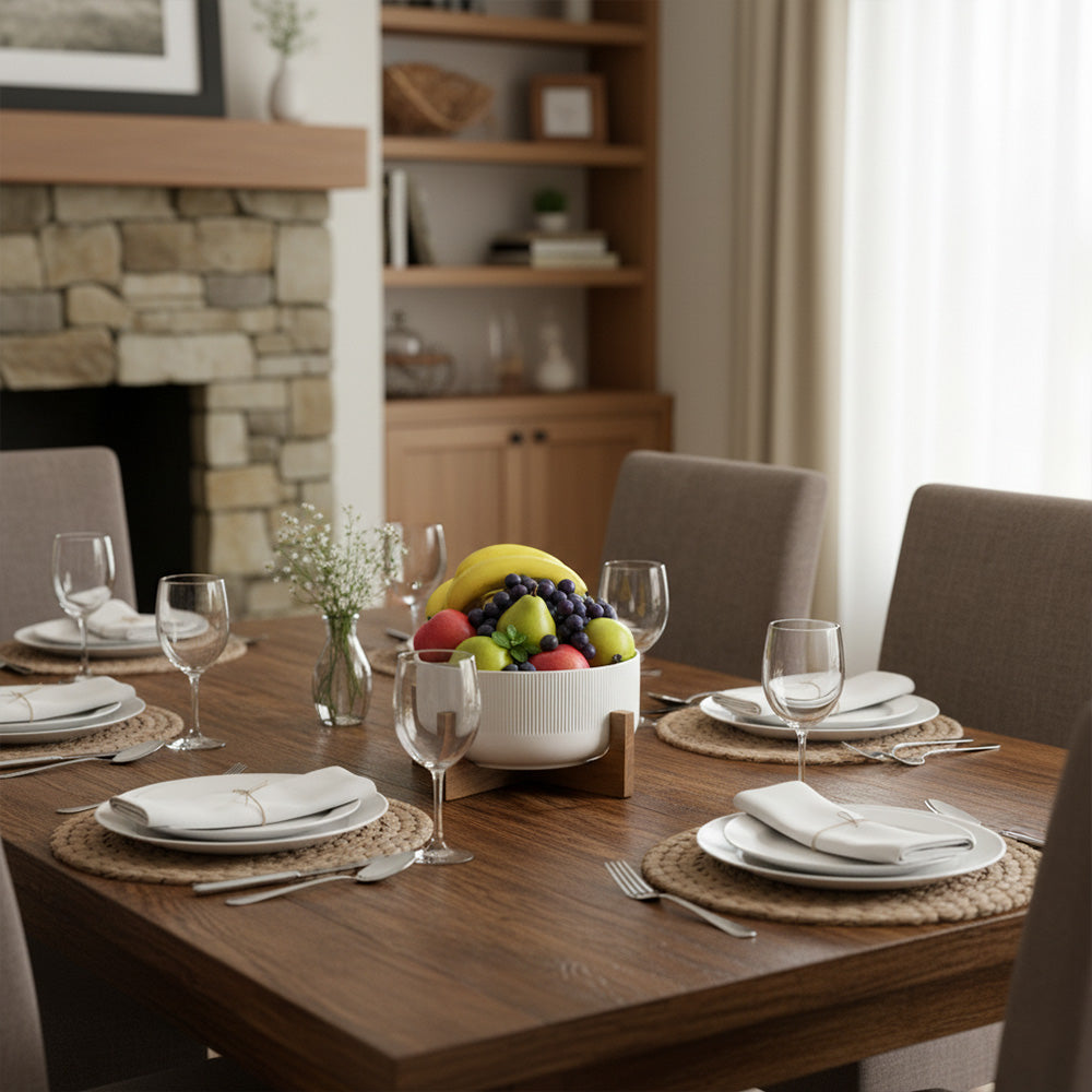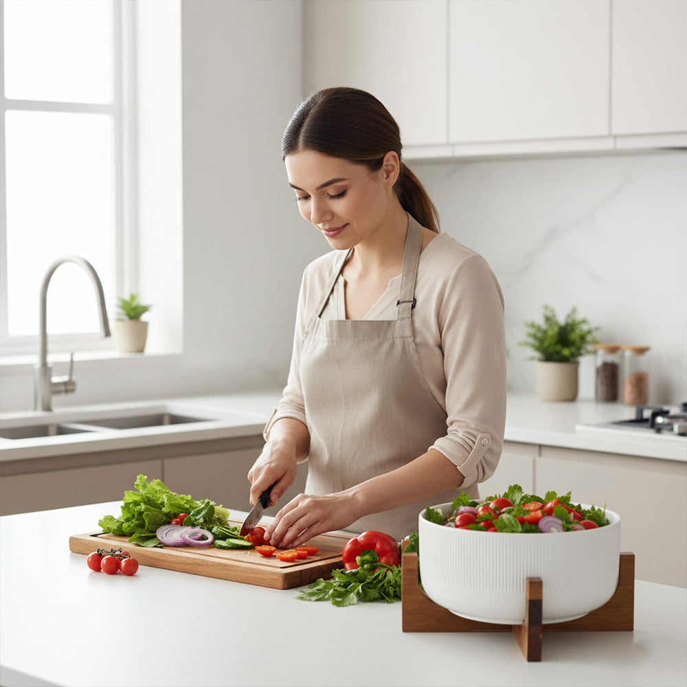 أحضر الموضة إلى منزلك، مع أدوات المائدة الفاخرة عالية الجودة، ووعاء السلطة والإطار الخشبي.