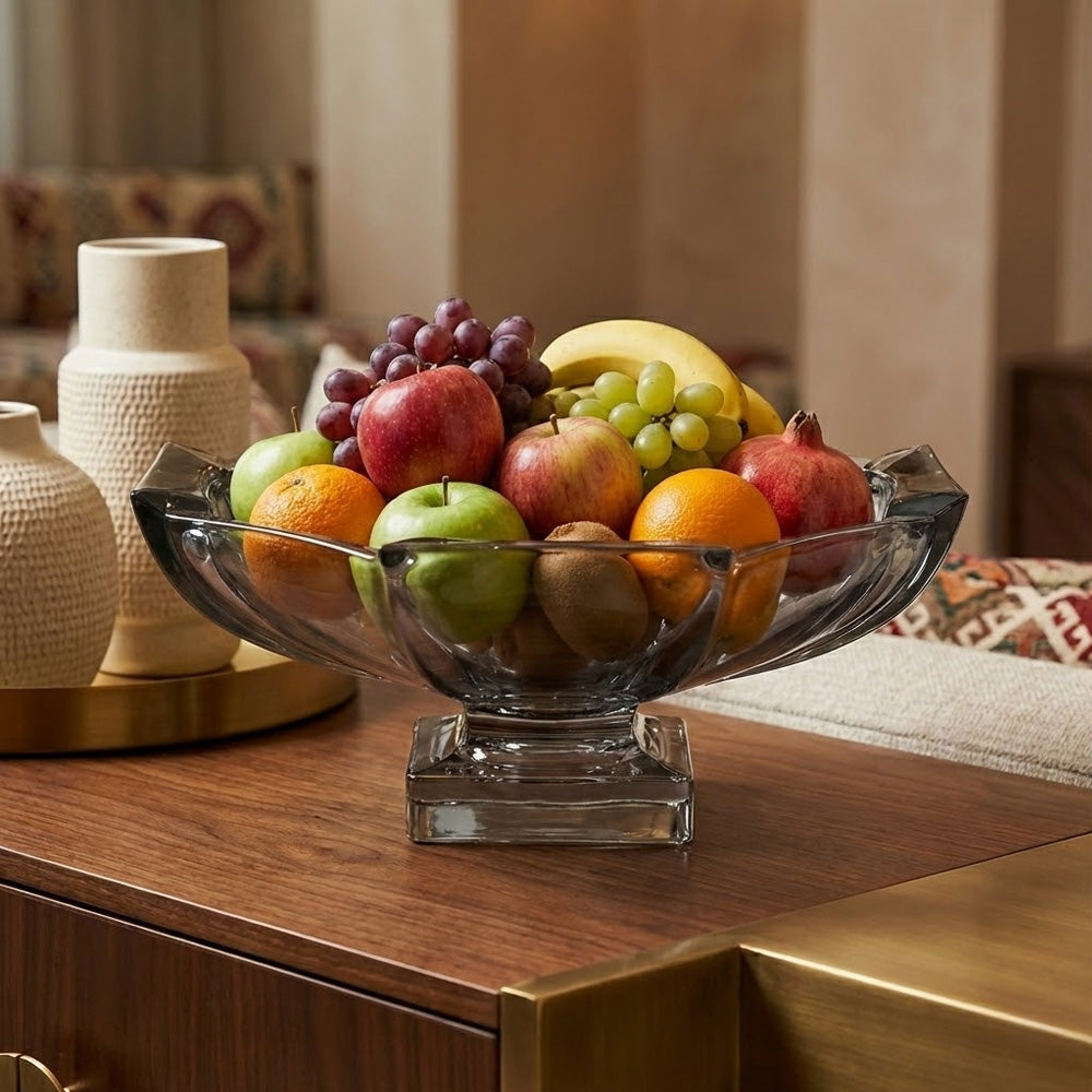 وعاء فواكه حديث من الكريستال على قاعدة