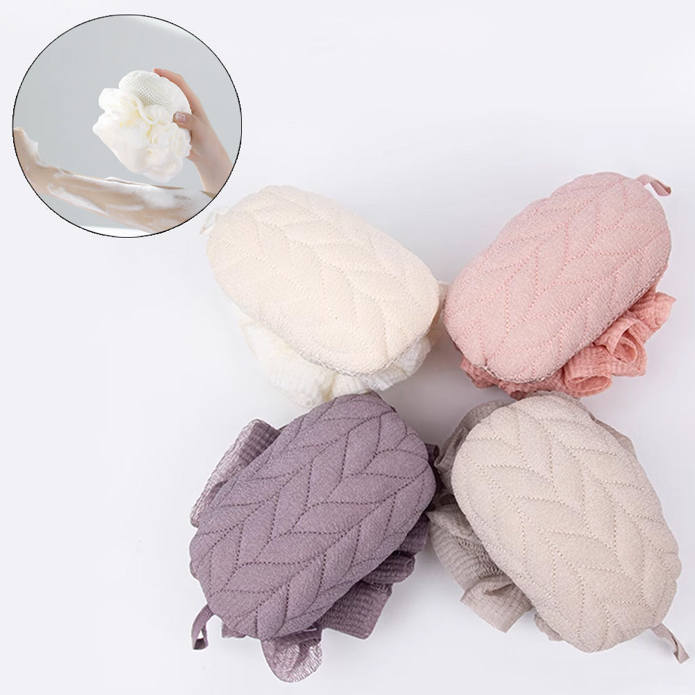استمتعي بتنظيف عميق وتجربة استحمام منعشة مع ليفة الاستحمام الفاخرة بتصميمها البيضاوي المريح. مصنوعة من خامات ناعمة وفعالة لتنظيف البشرة بلطف وإزالة الأوساخ وخلايا الجلد الميتة. تتميز بطبقتين: سطح ناعم للراحة وجانب شبكي للتقشير، بالإضافة إلى حزام يدوي مريح للاستخدام السهل.