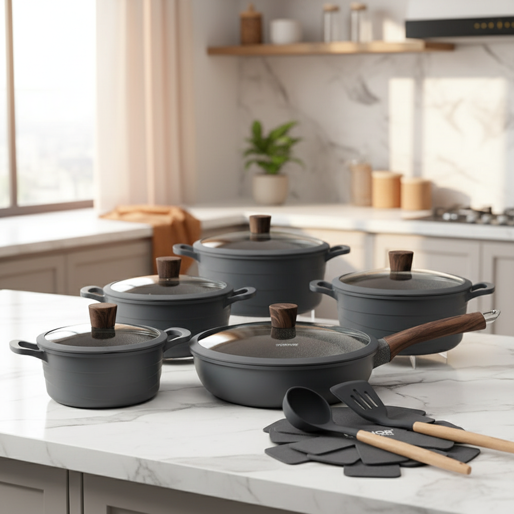 15 قطعة من أواني الطبخ المصنوعة من الألومنيوم