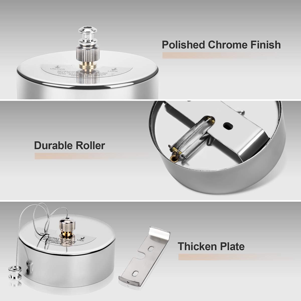 Widespread UseThis 12.5ft Retractable Clothesline is great for both indoor and outdoor use. A perfect choice for laundry rooms, porches, hotels, balconies, boats, patios and more |