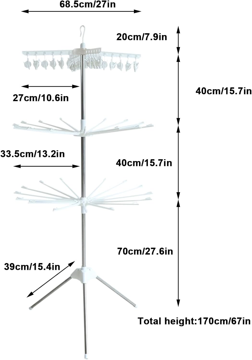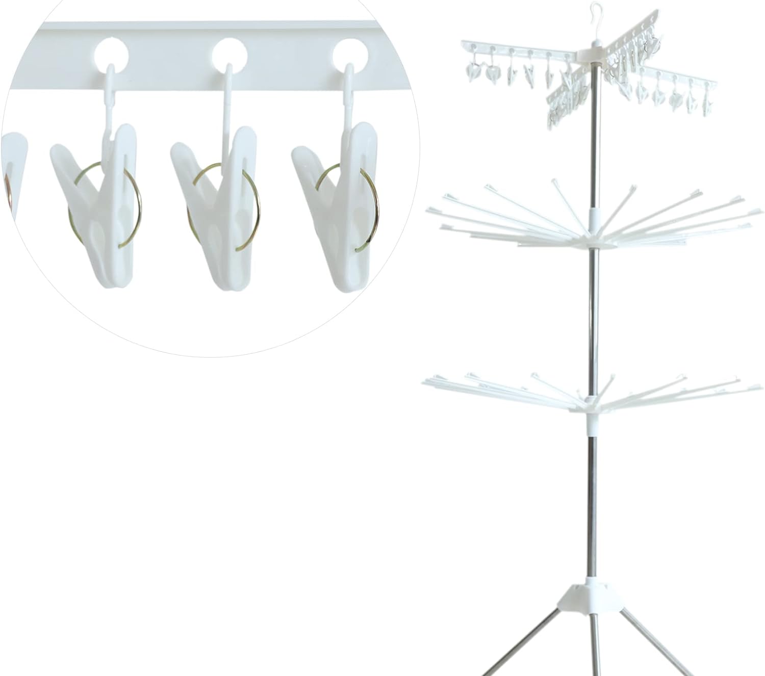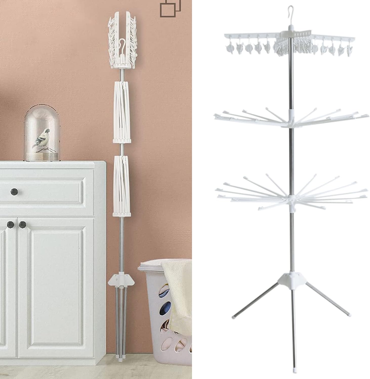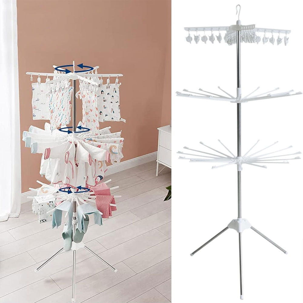LINISHOP شماعات 3 ارفف لتجفيف الملابس قابلة للطي 360 درجة دوران الملابس الداخلية الغسيل شماعات مجفف المنظم الفولاذ المقاوم للصدأ أبيض جديد