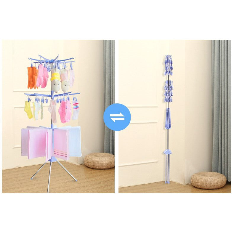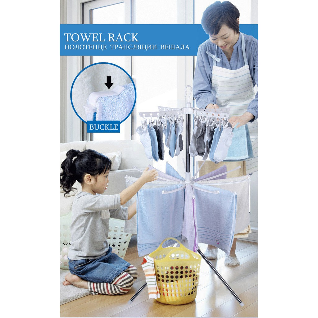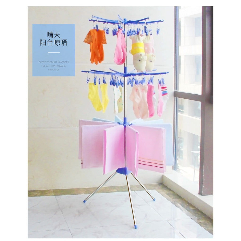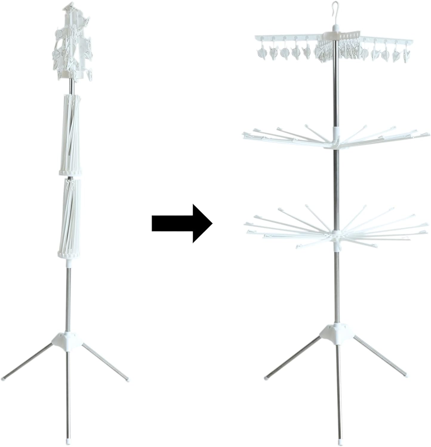 LINISHOP شماعات 3 ارفف لتجفيف الملابس قابلة للطي 360 درجة دوران الملابس الداخلية الغسيل شماعات مجفف المنظم الفولاذ المقاوم للصدأ أبيض جديد