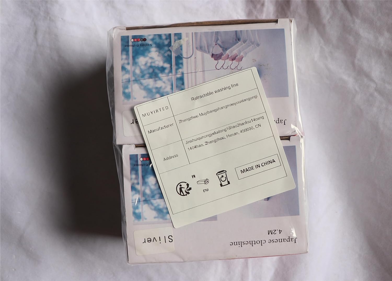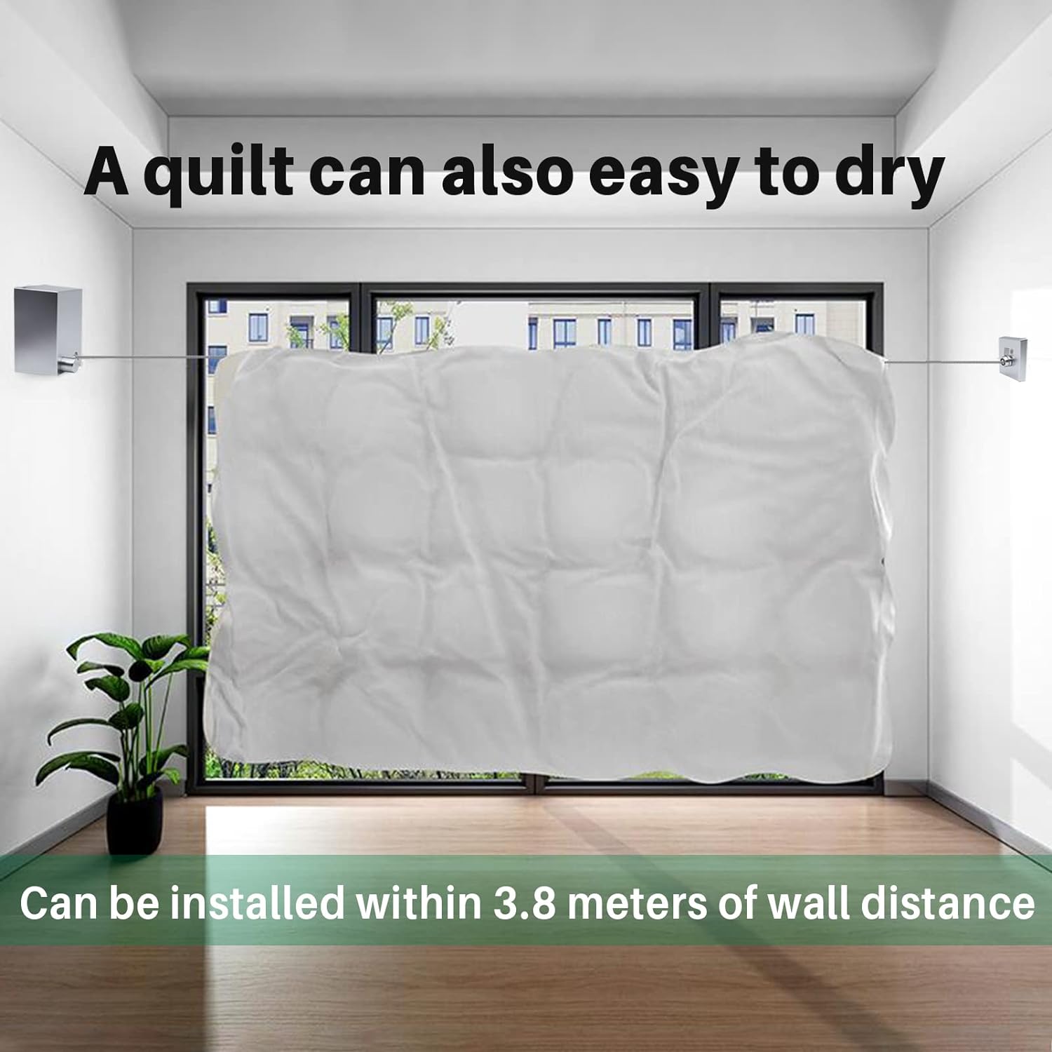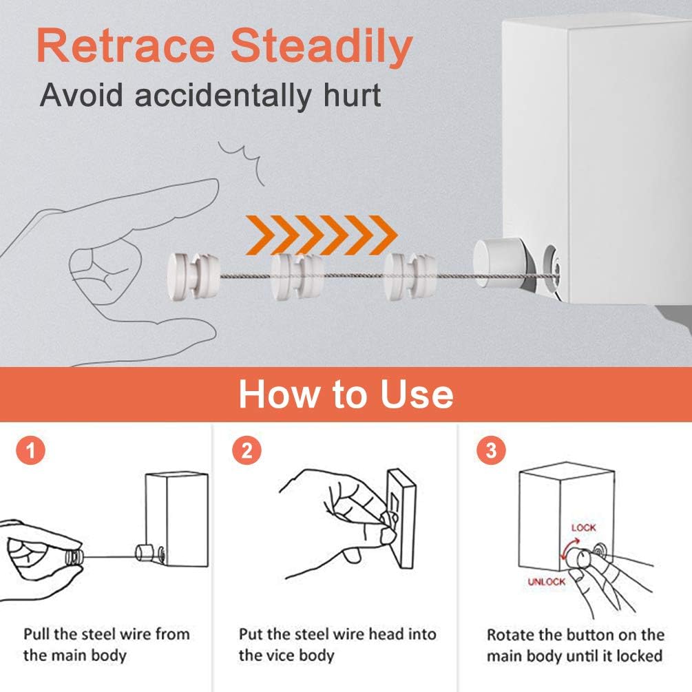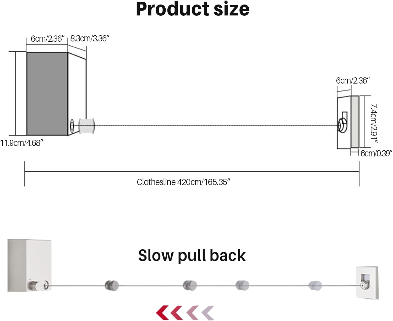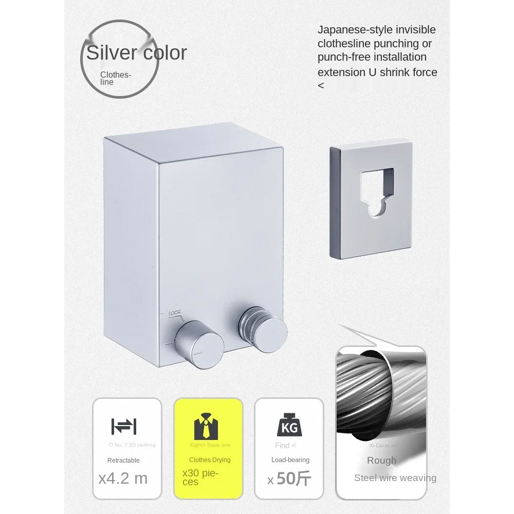 حبل غسيل قابل للسحب بطول 4.2 متر للاستخدام الداخلي وحبال غسيل مثبتة على الحائط للاستخدام الخارجي، حبل غسيل فضي