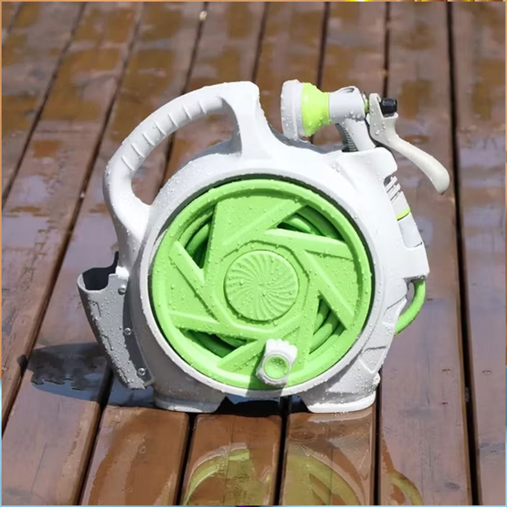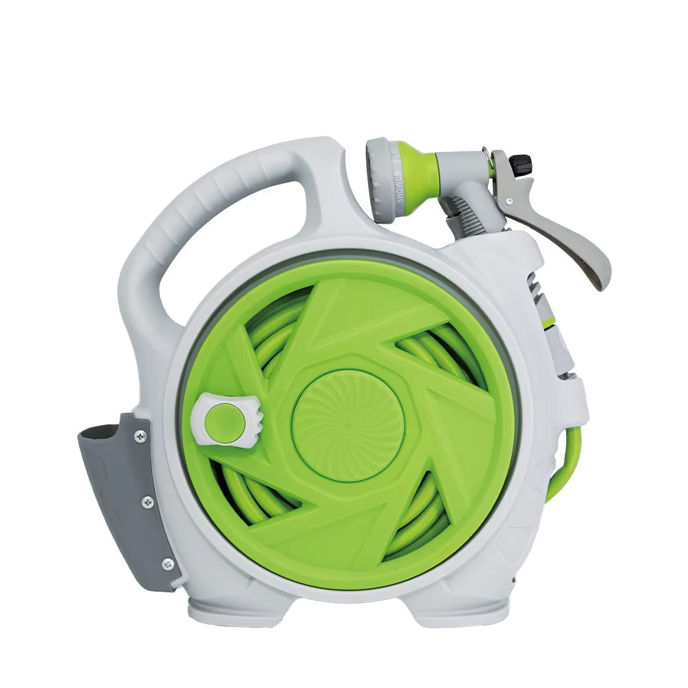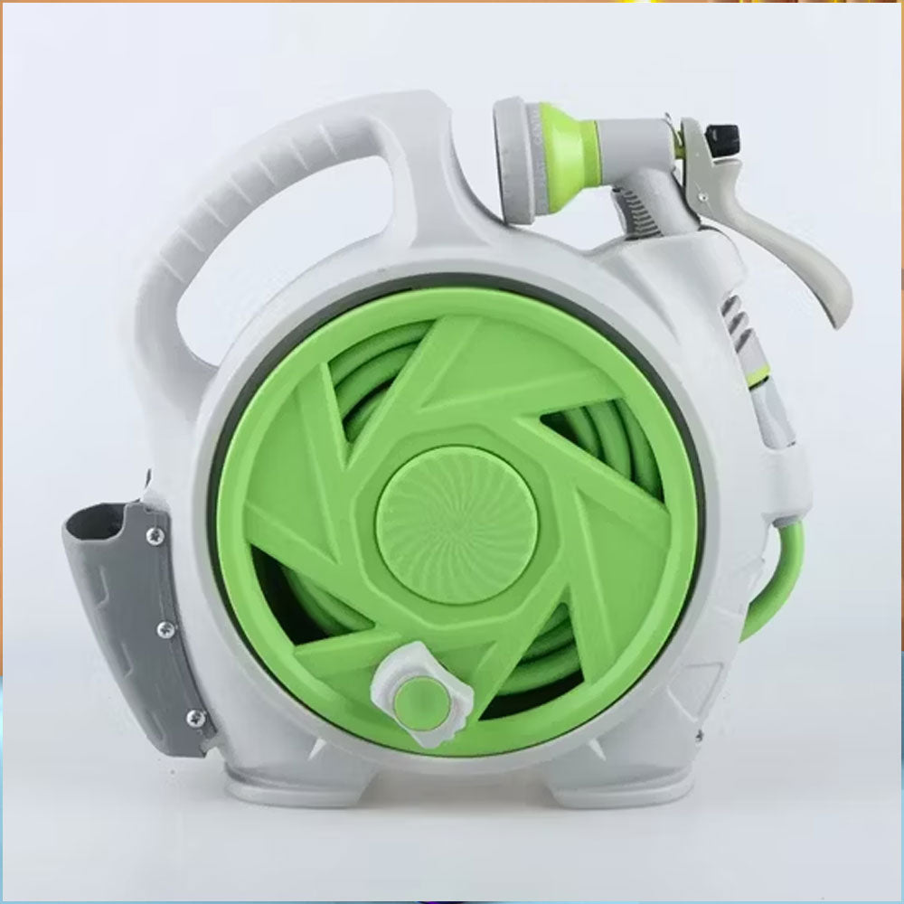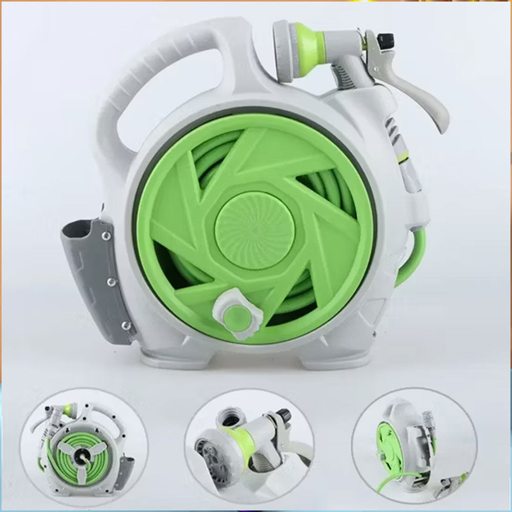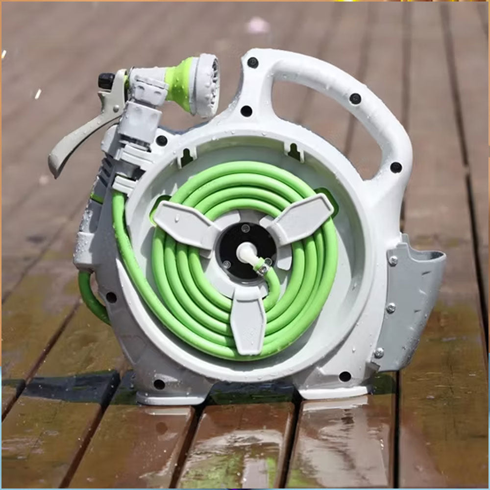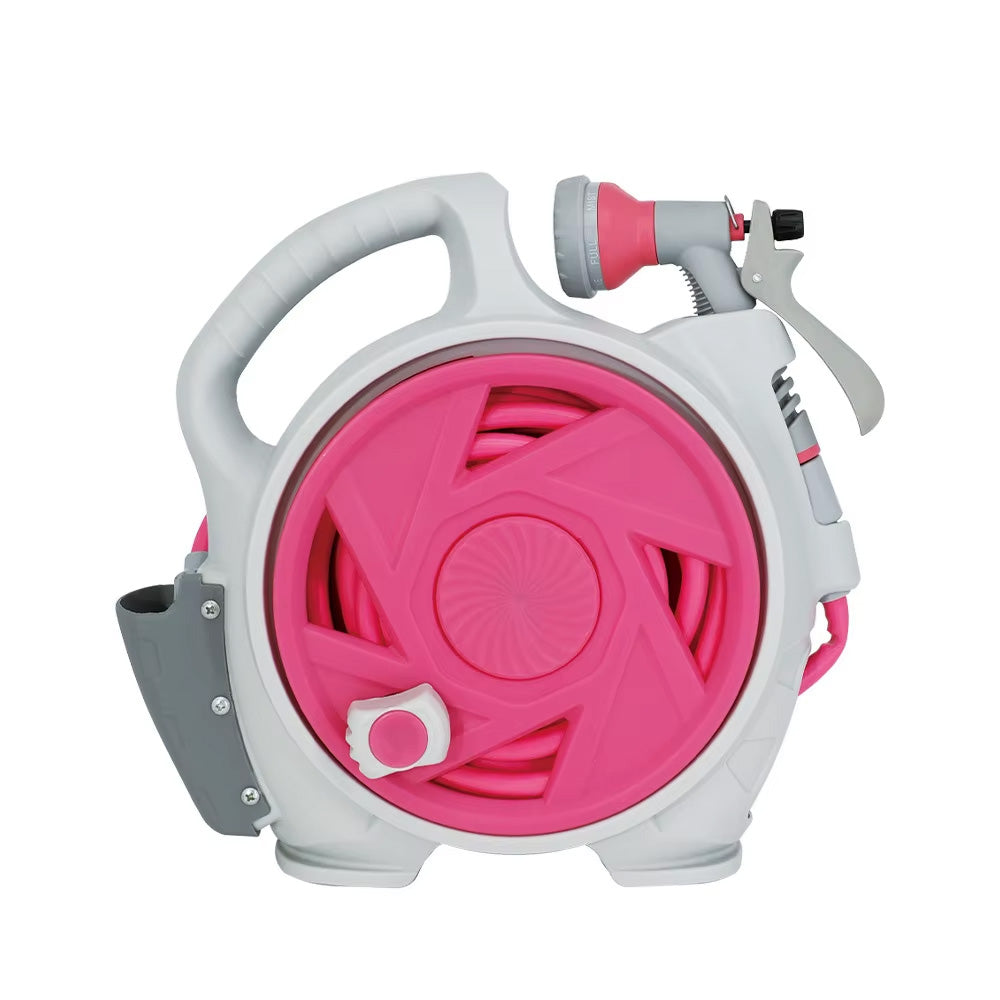 بكرة خرطوم حديقة بلاستيكية قابلة للسحب مع فوهة سبع وضعيات لري النباتات أو غسل السيارات والحيوانات الأليفة
